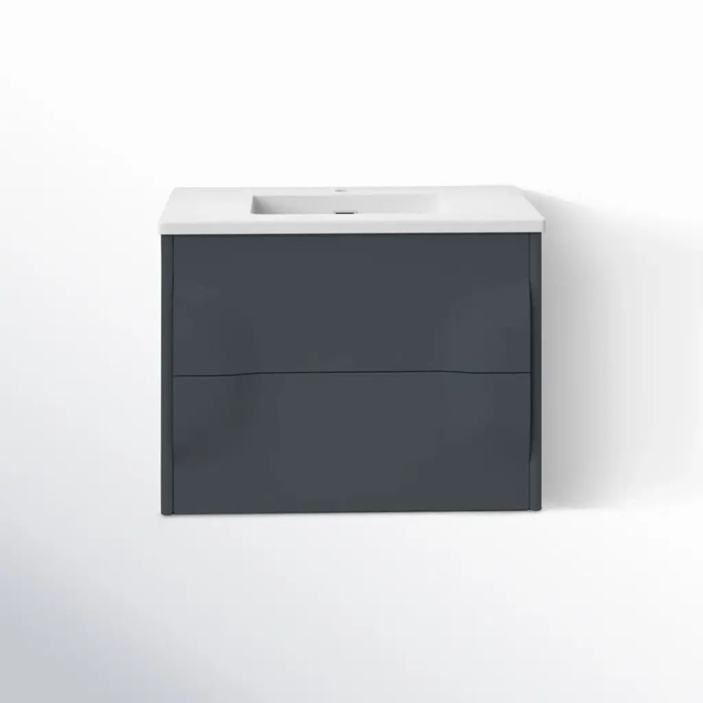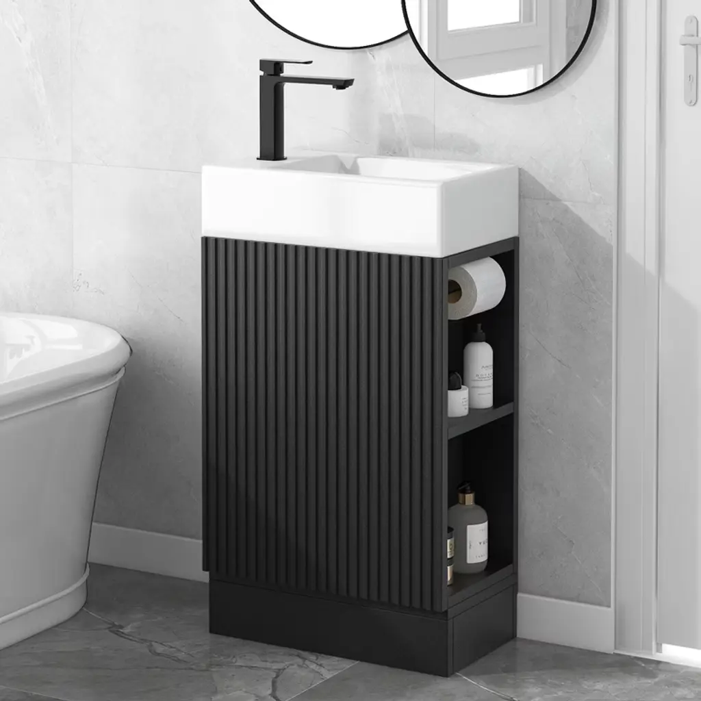 Dexmalle Stripe Pattern Black Bathroom Vanity With Sink And Two-tier Shelf