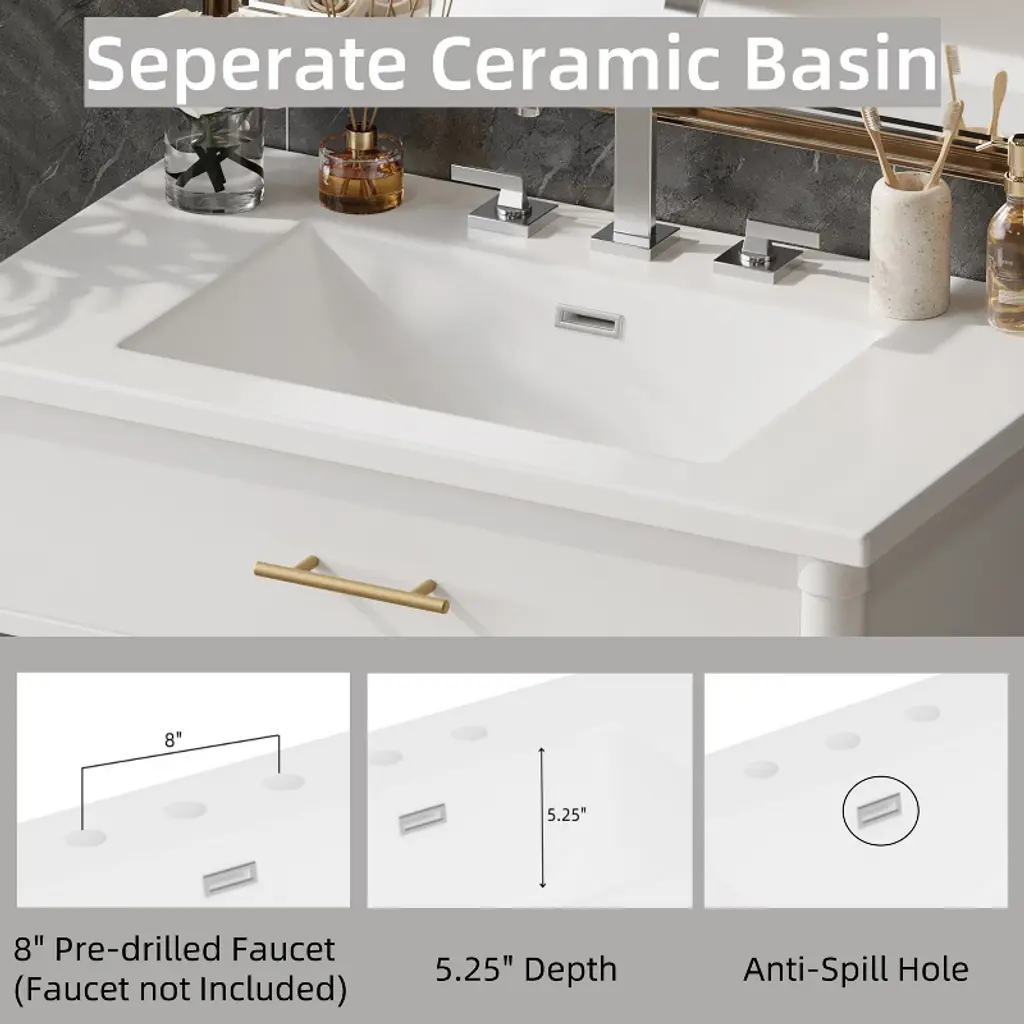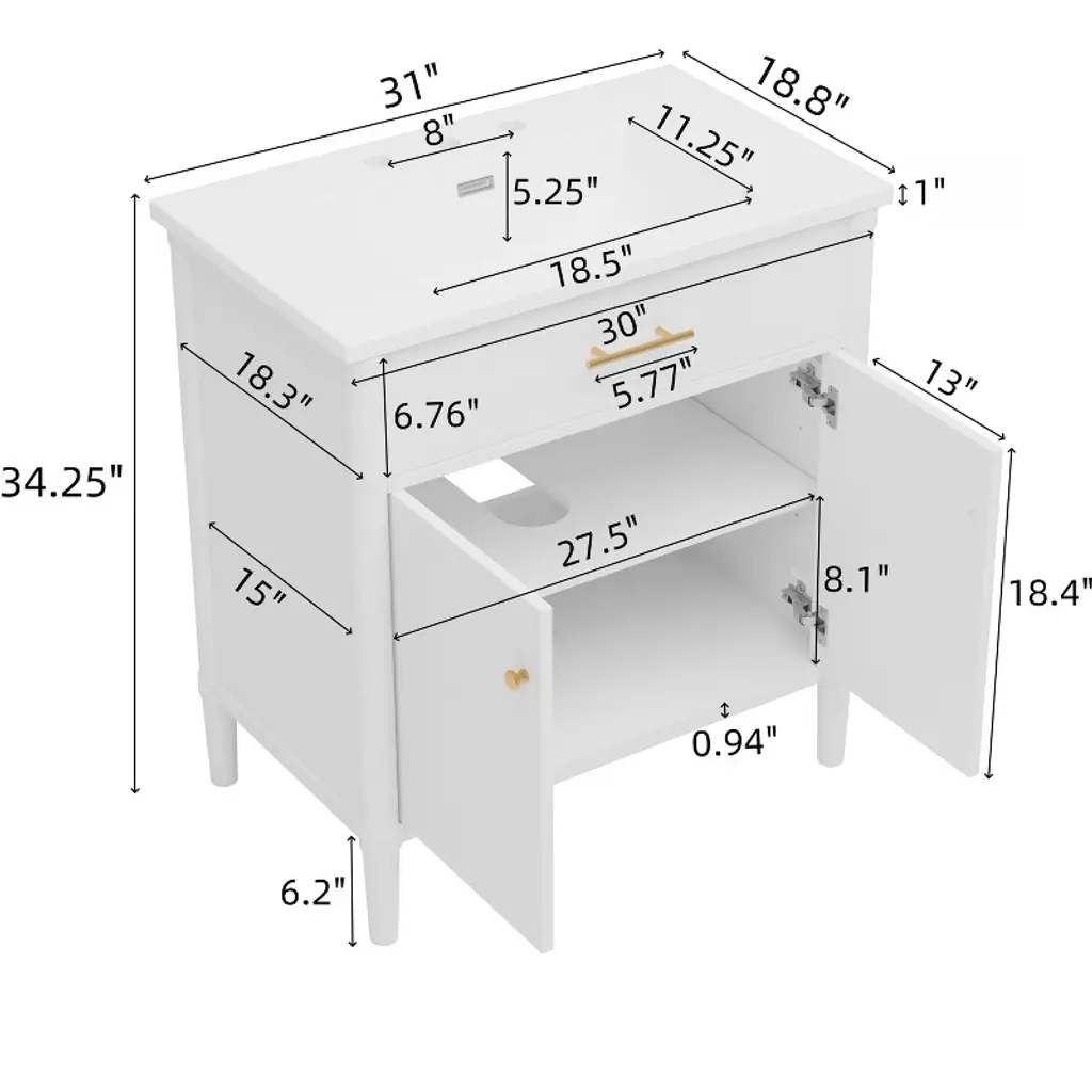 Dexmalle White 31" Bathroom Vanity With Soft Close Doors And Adjustable Shelf