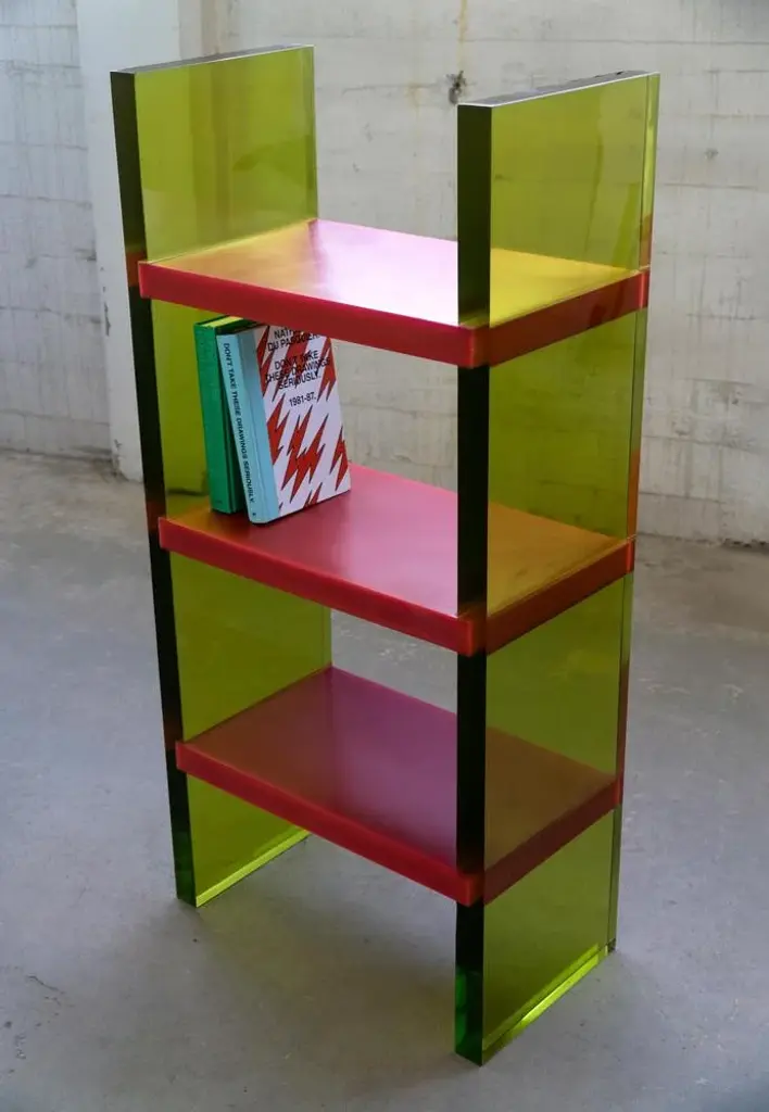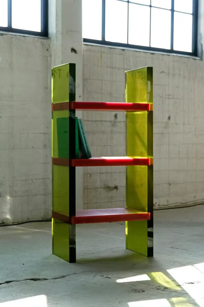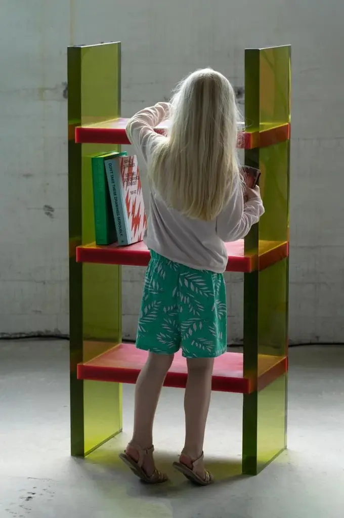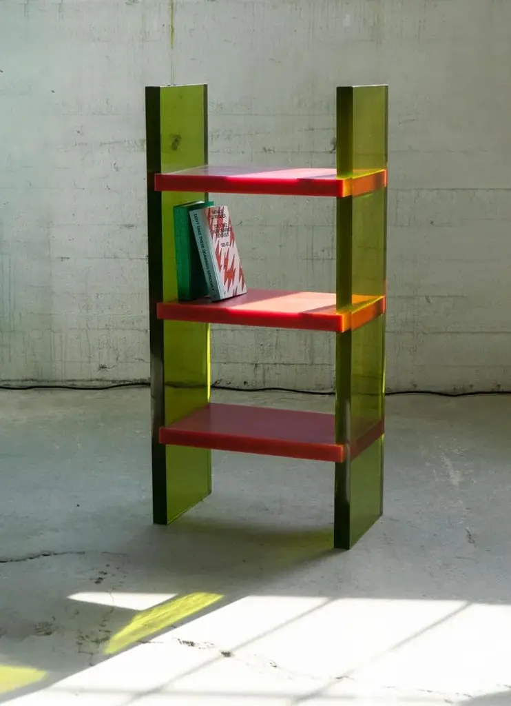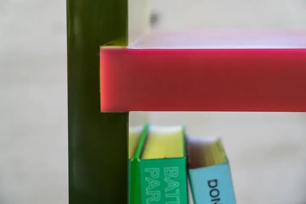 Differ Shelf by Lisa Brustolin Dimensions: W 66 x D 44 x H 134 cm Materials: Epoxy Resin Differ Shelf is a bookshelf featured by high contrasts, the horizontality and verticality of the lines, the transparency of the epoxy resin for the legs while pure opaque color for the shelves and of course a bold combination of colors. His appearance will vary depending on light and point of views, inviting the public to walk around it, giving the possibility to use it also in the middle of a room. Handcrafted in Rotterdam, together with resin masters, this bookshelf is yet simple in its structure and modern, it elevates the concept of the shelving as the display of our minds.
