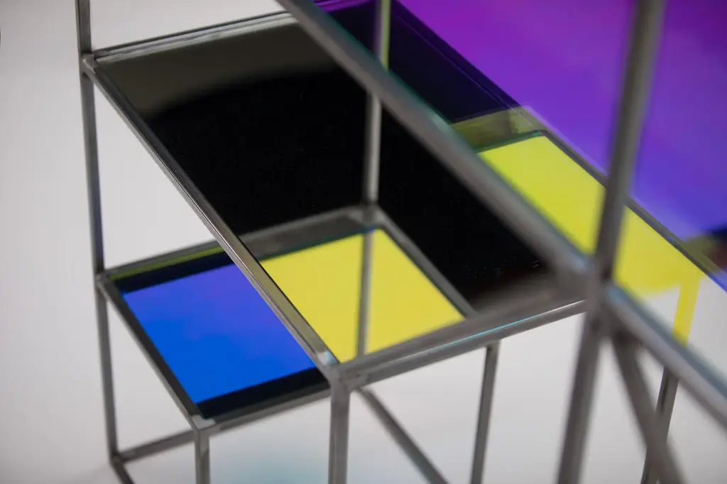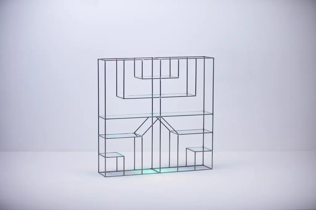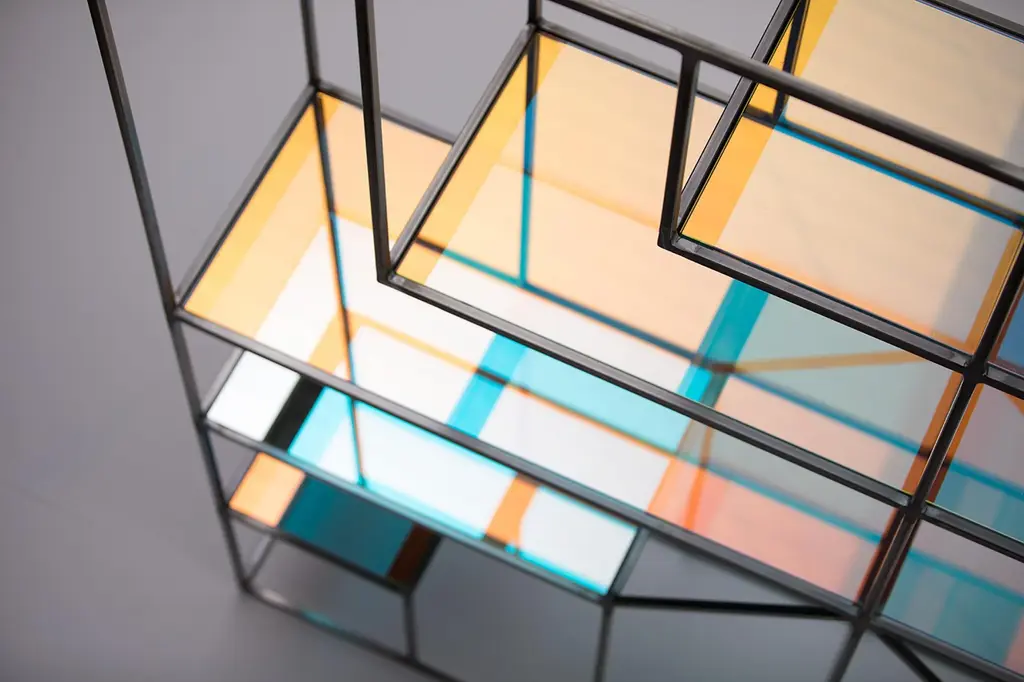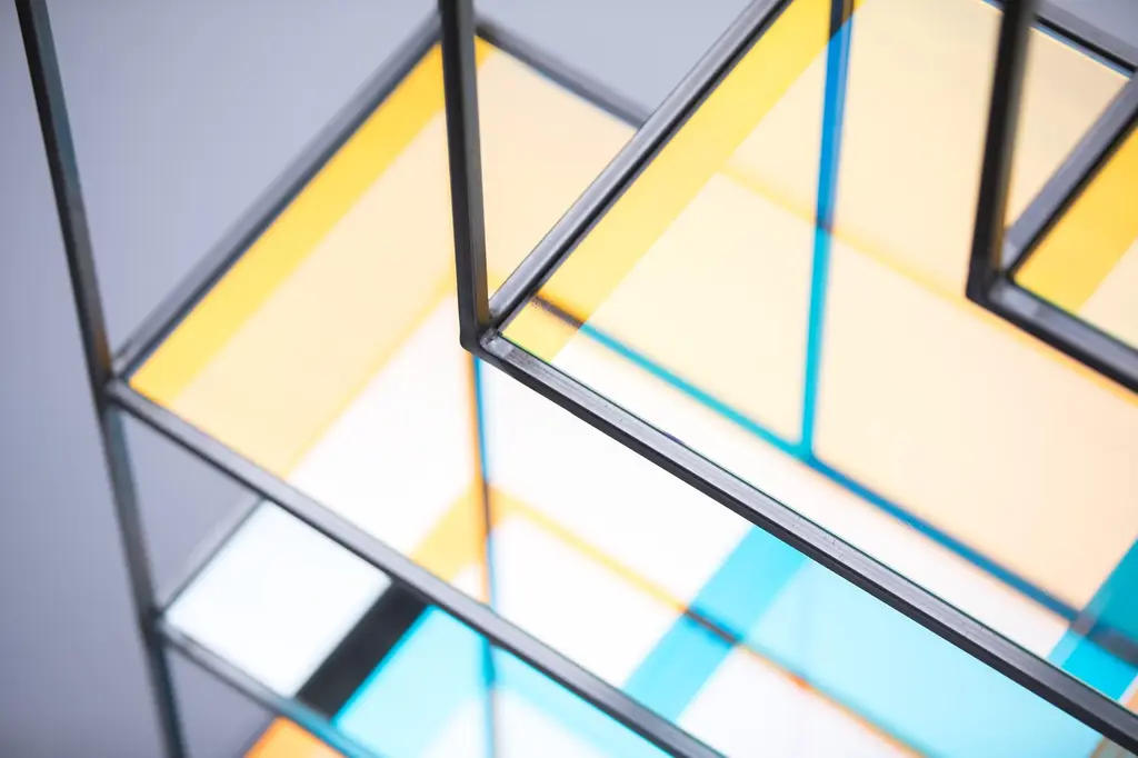 The metal shelf dom two is a result of a passion for simplicity by mazanli. the contemporary berlin design enchants by the economical use of material. With its clear, symmetrical shape, right angles, and omitting unnecessary parts, it gives an impression of weightlessness. the real beauty of the shelf, however, lies in the inter-play with the light. The iridescent glass shelves made of 8 mm safety glass reflect the incident light and can create a true rainbow of colours with the right lighting. This effect is breath-taking. dom two has a height of 200 cm, a depth of 40 cm and a width of 200 cm. the shelf is fully welded from highly robust square tubes (1.5 cm x 1.5 cm) made of krupp steel and is delivered in one piece. You can choose between white powdered steel, untreated steel, or black powdered steel. when ordering. mazanli offers customisations. If special measures are needed,. please note: the untreated version is really untreated scratches and all the signs of welding (inclusive "rainbow effect" with dazzling colours) are clearly visible addition developed the steel develops a patina over time that also includes rust. All of this is intended and part of the design. If the effects mentioned are undesirable, we recommend choosing the powder-coated version in black or white. These are protected and do not develop any patina.
