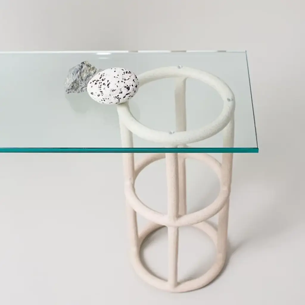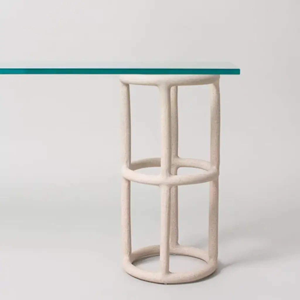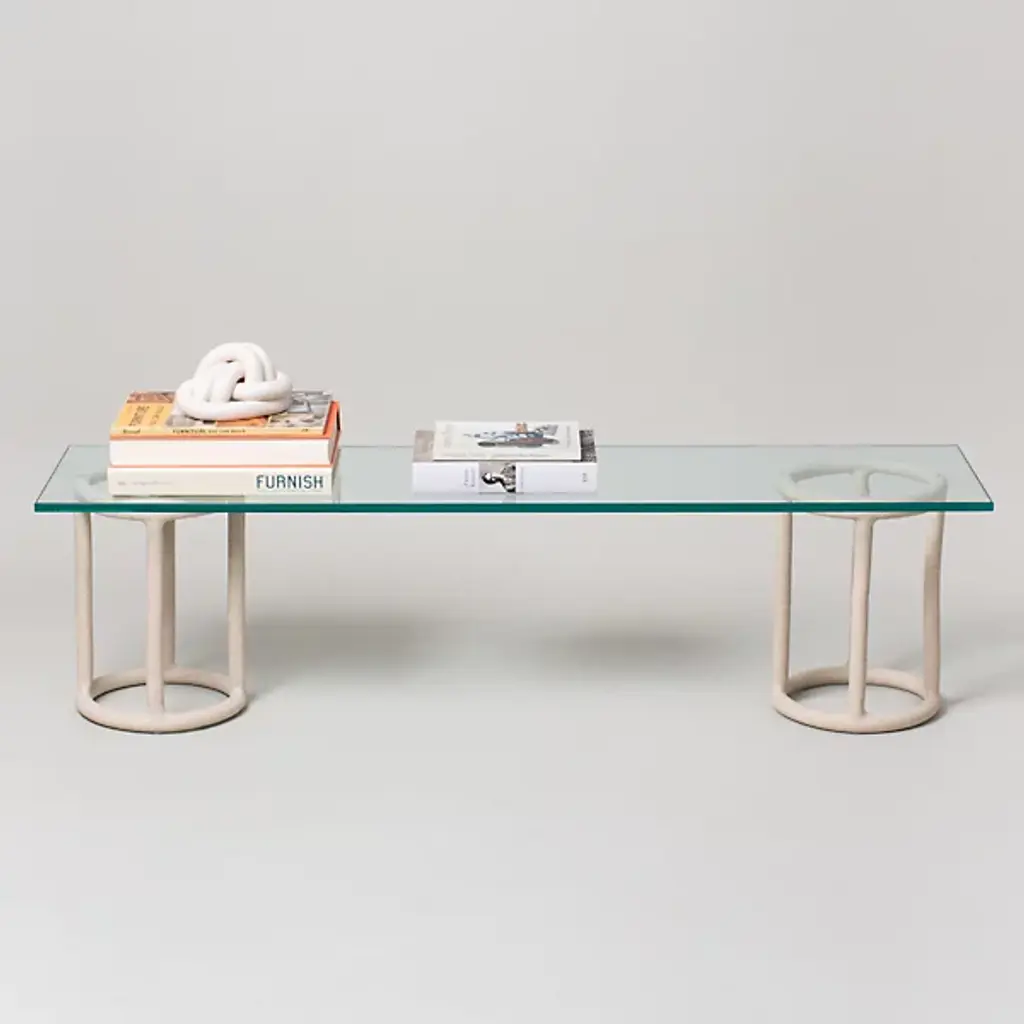 The Doric Shelf from SIN presents a mix of classically inspired construction and simple, contemporary design. Part of the SIN-signature Fig system, short for “Configuration,” its namesake evokes the open ceramic cylinders of the ancient Doric columns, and it uses two handmade ceramic stoneware bases to support a half-inch thick plank of strong tempered glass that can hold all manner of accessories or decorations. The slick glass contrasts nicely with the textured ceramic, transforming its surroundings by highlighting the two very different materials that offer a similar airy appeal.
