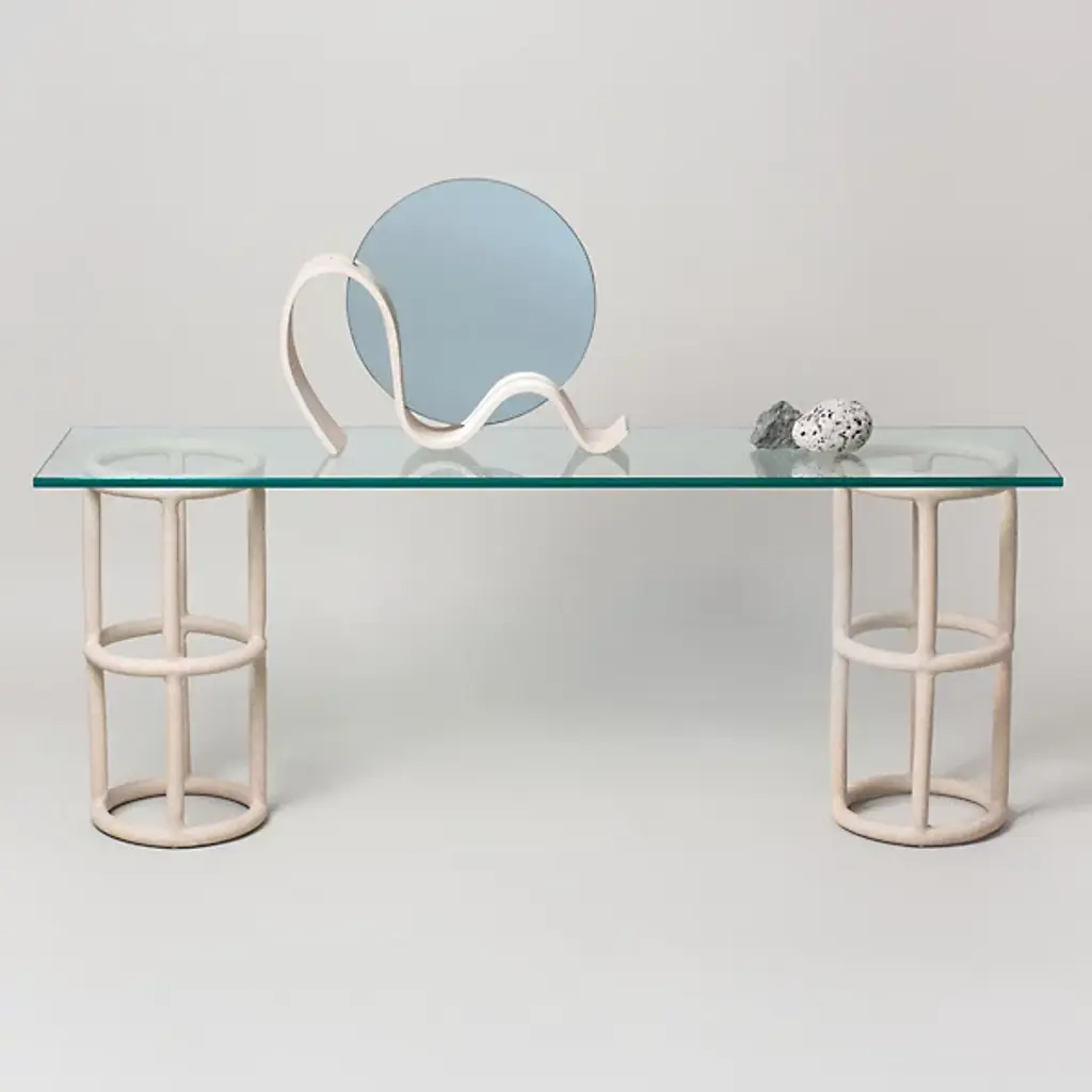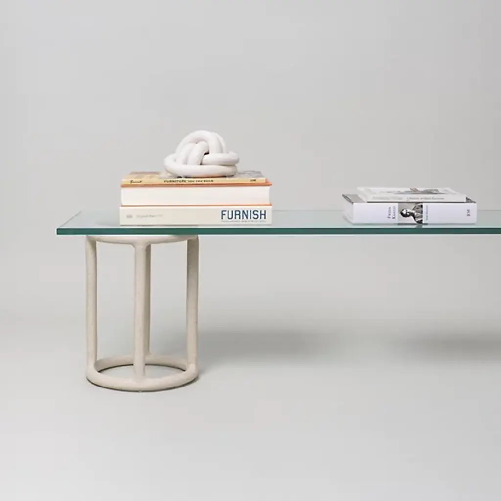 The Doric Shelf from SIN presents a mix of classically inspired construction and simple, contemporary design. Part of the SIN-signature Fig system, short for “Configuration,” its namesake evokes the open ceramic cylinders of the ancient Doric columns, and it uses two handmade ceramic stoneware bases to support a half-inch thick plank of strong tempered glass that can hold all manner of accessories or decorations. The slick glass contrasts nicely with the textured ceramic, transforming its surroundings by highlighting the two very different materials that offer a similar airy appeal.