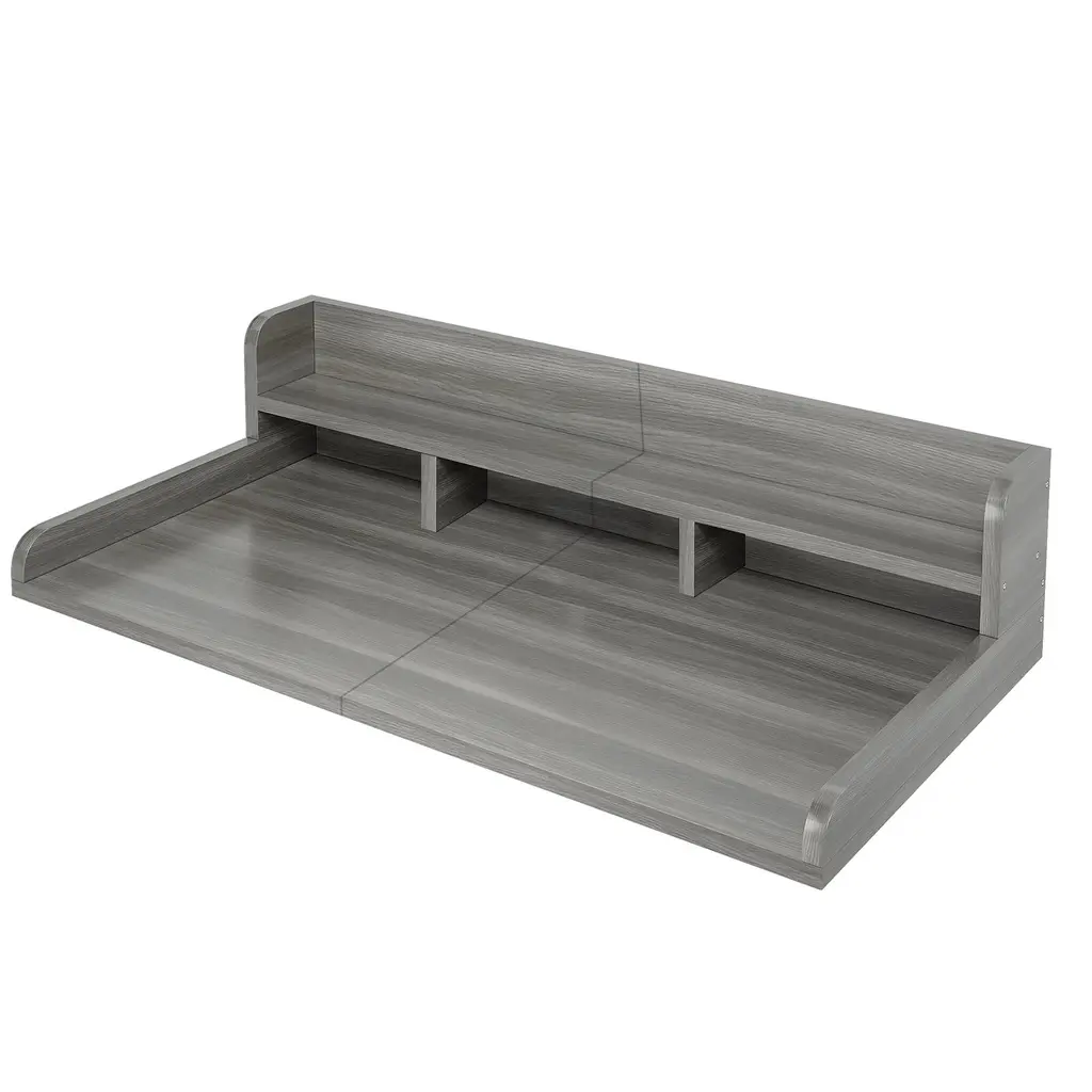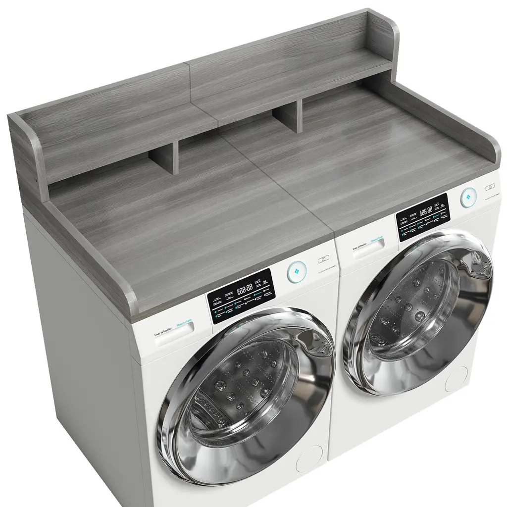 Double Layer Laundry Wood Shelf Topper For Washer And Dryer - Gray+white Matte