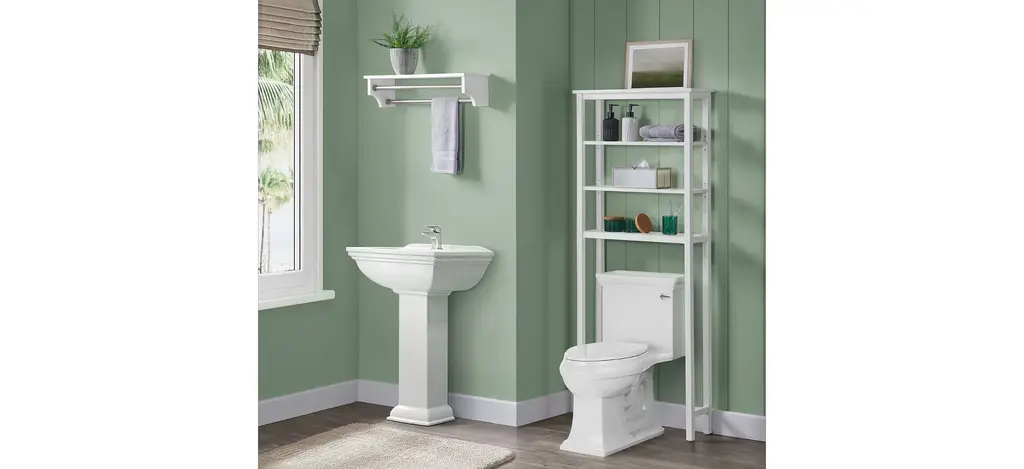 This classic Dover Bathroom Shelf w/ Towel Rods brings space saving-storage to your bathroom. Designed for both style and functionality, this shelf complements most bathroom d_cor.