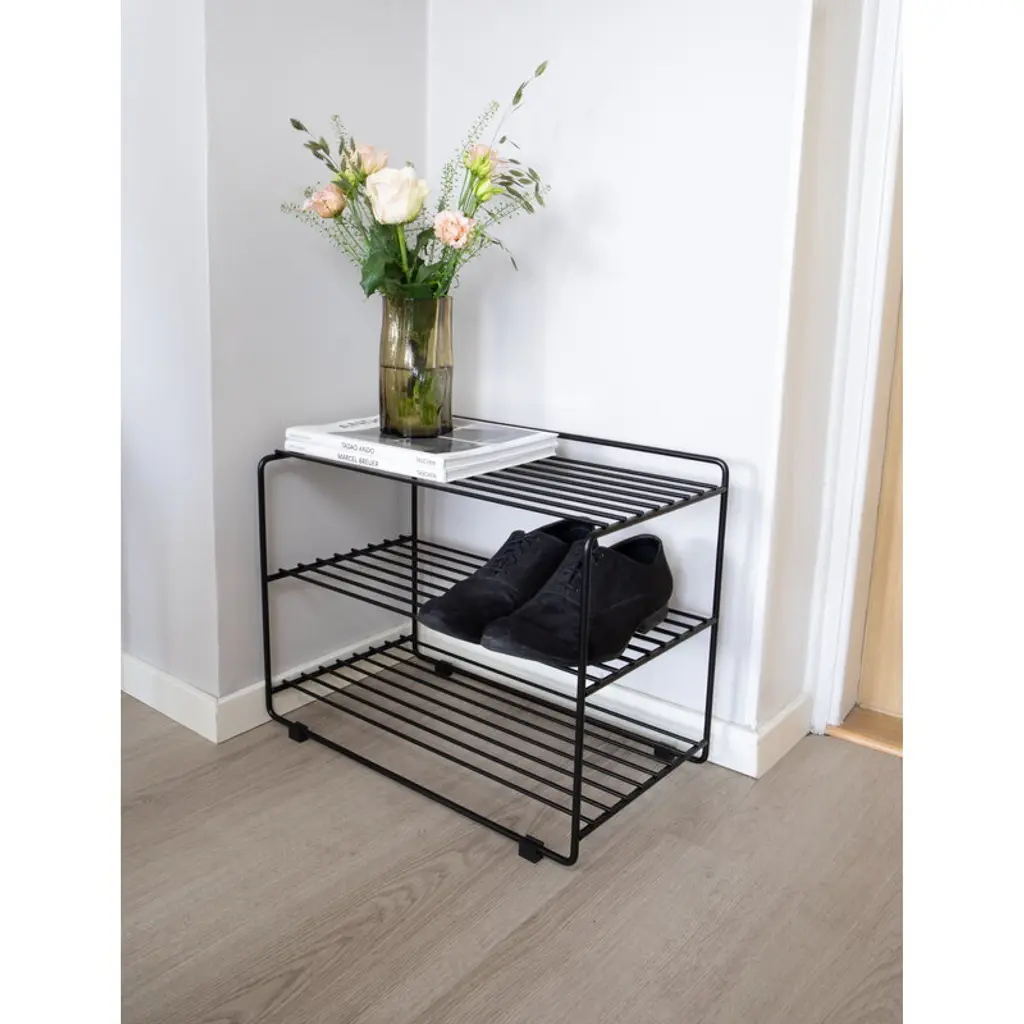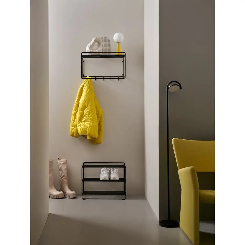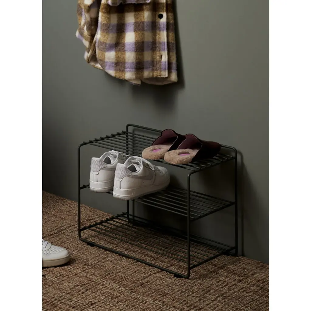 The Downtown shoe shelf by the Swedish Maze is a geometric shoe rack with a functionalism-inspired form. Downtown helps you store shoes and storage boxes in an airy and elegant style, and you can also create a larger storage system by placing several shelves next to one another. The Downtown shoe shelf is made in Sweden using partially recycled metal.