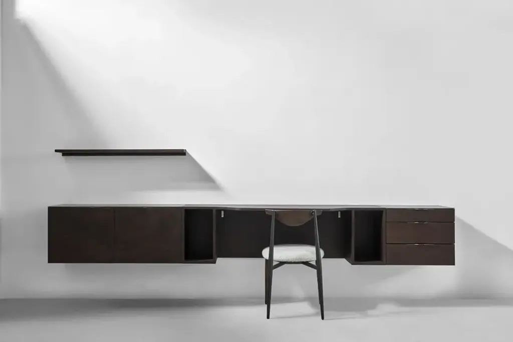 The Drift storage collection includes shelves, cabinets and drawers to create a functional wall system that allows to organise home & office. All are made from oak veneer and solid oak.