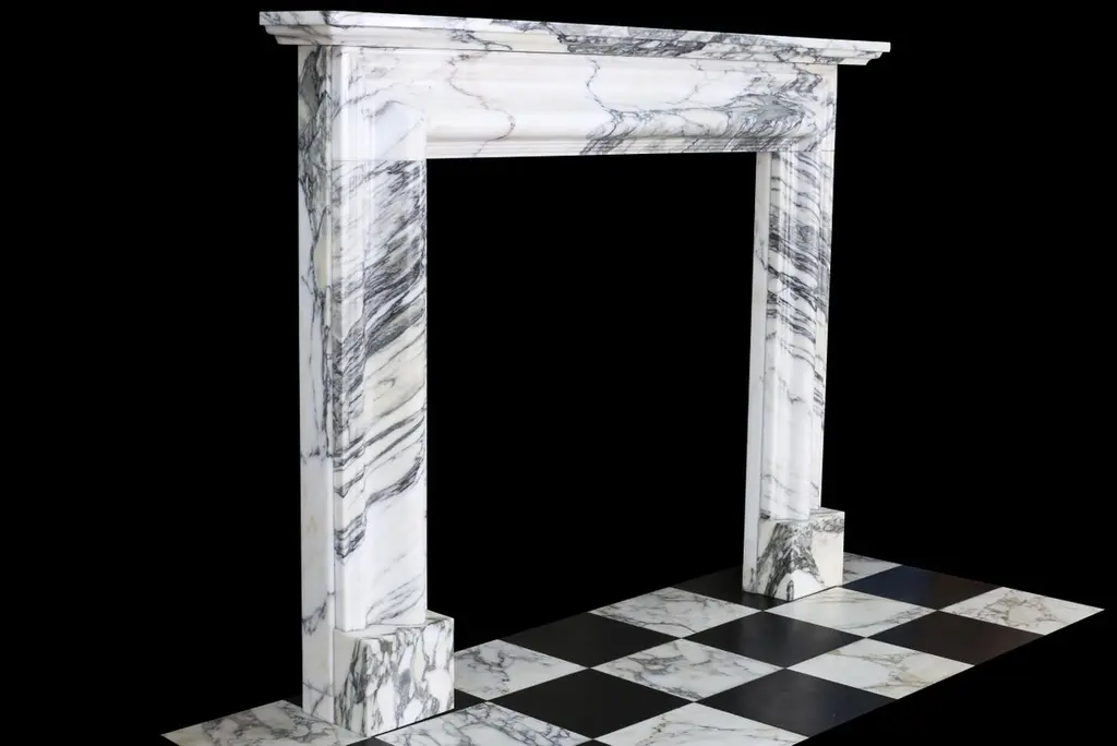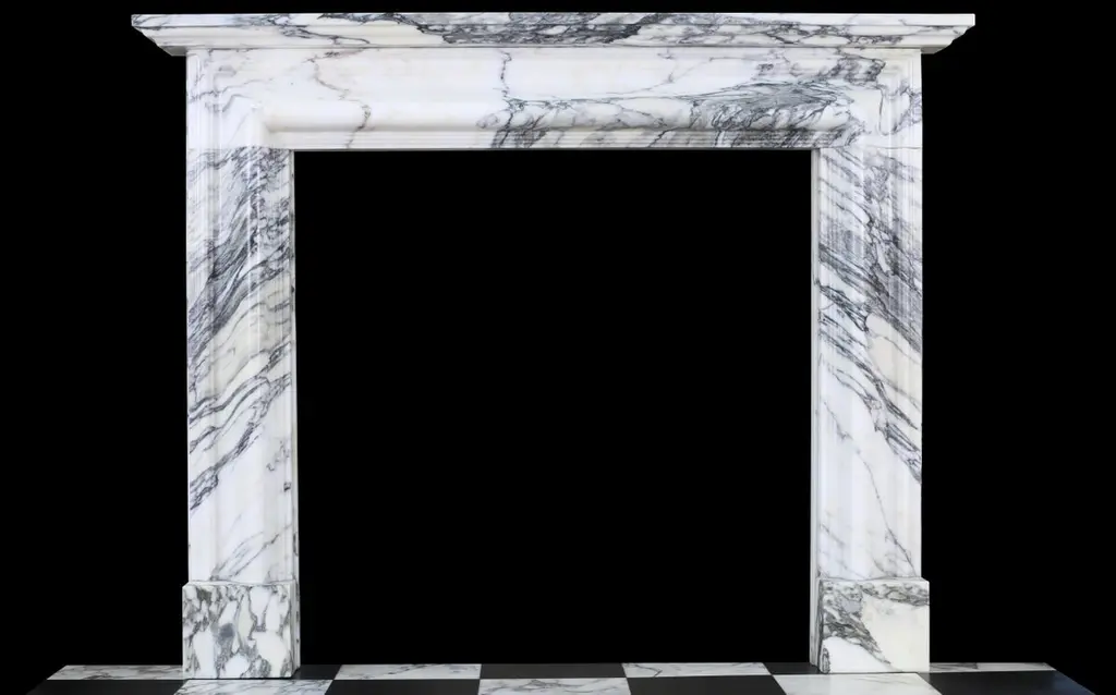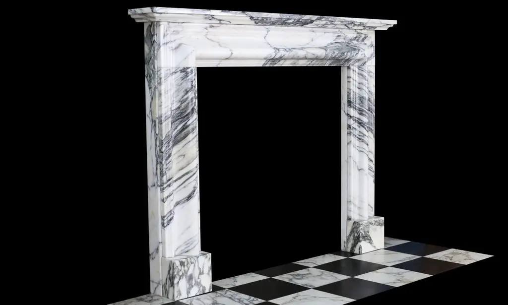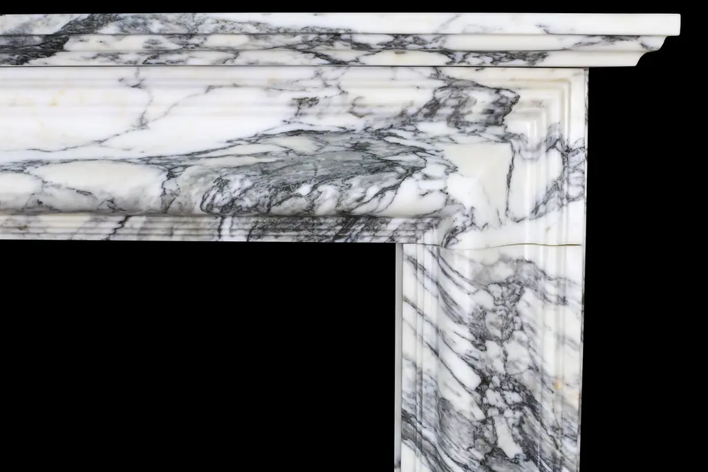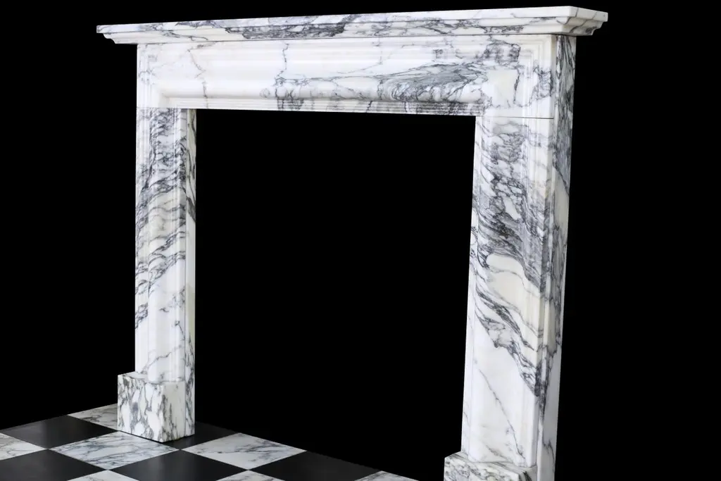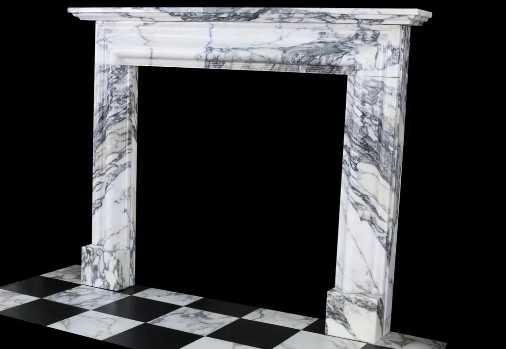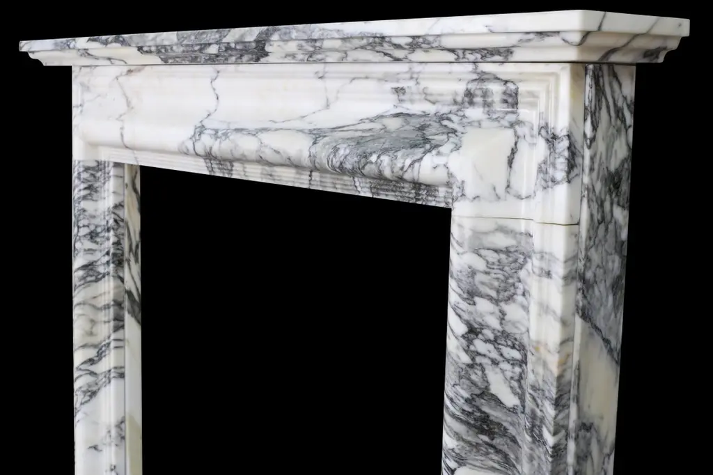 English Queen Anne Bolection Fireplace In Italian Arabescato Marble With Shelf