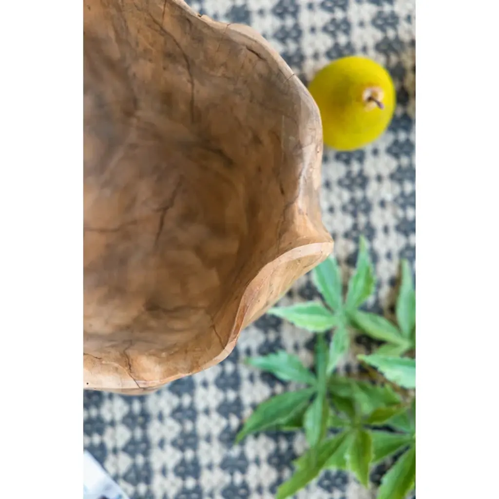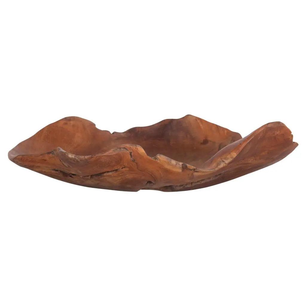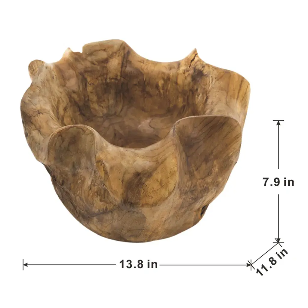 Enny Hand-Carved Decorative Teak Root Bowl With Natural Brown Finish, Bohemian Accent Bowl For Tabletop, Counter, Shelf, Or Centerpiece Display, 14” X 12” X 8”