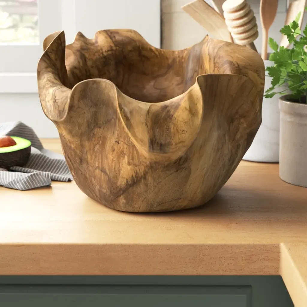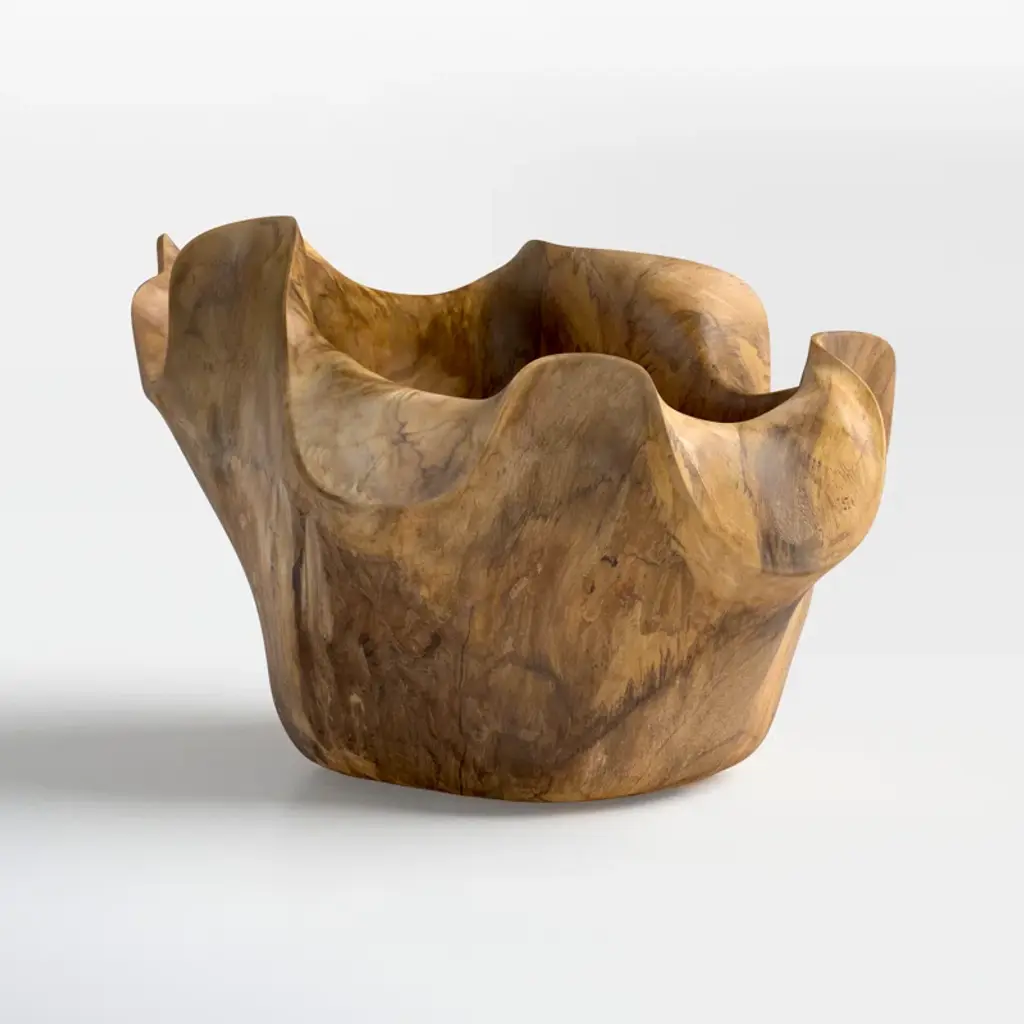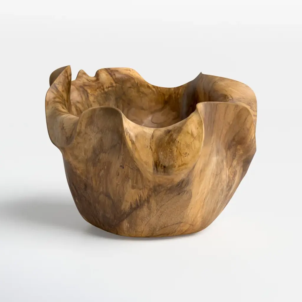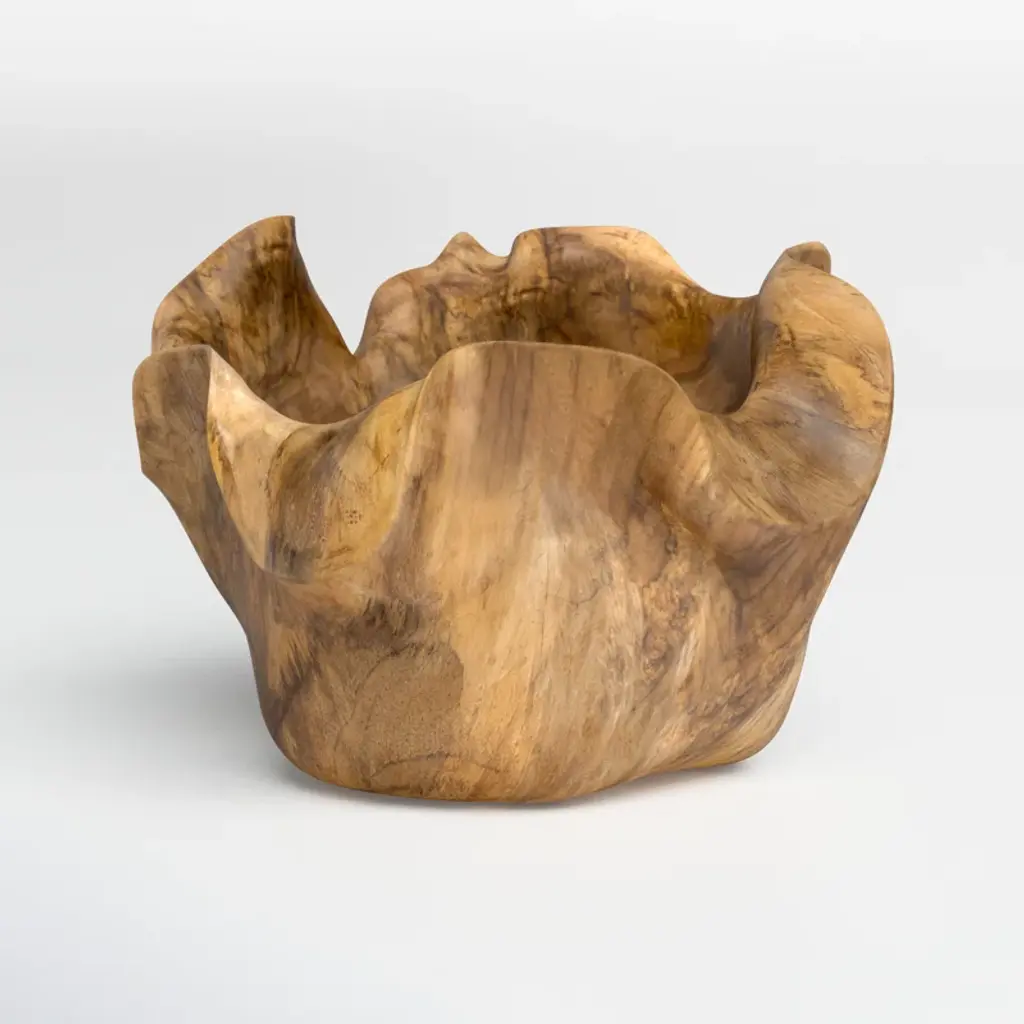 Enny Hand-Carved Decorative Teak Root Bowl With Natural Brown Finish, Bohemian Accent Bowl For Tabletop, Counter, Shelf, Or Centerpiece Display, 14” X 12” X 8”