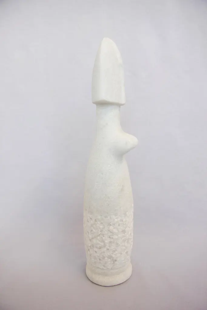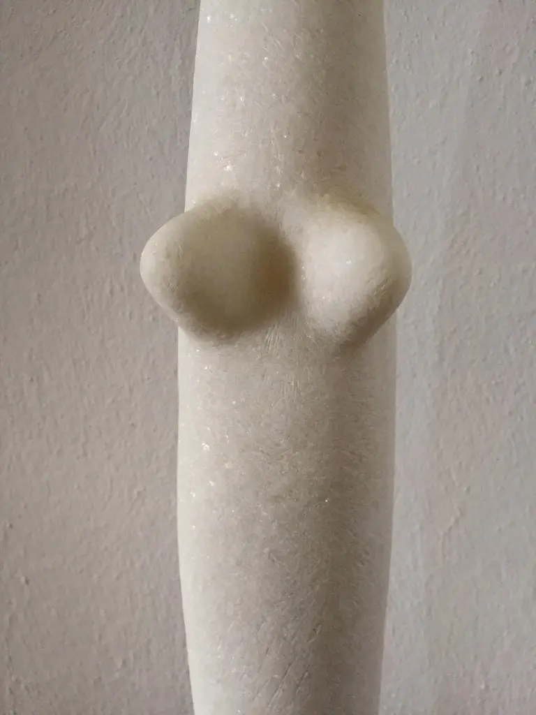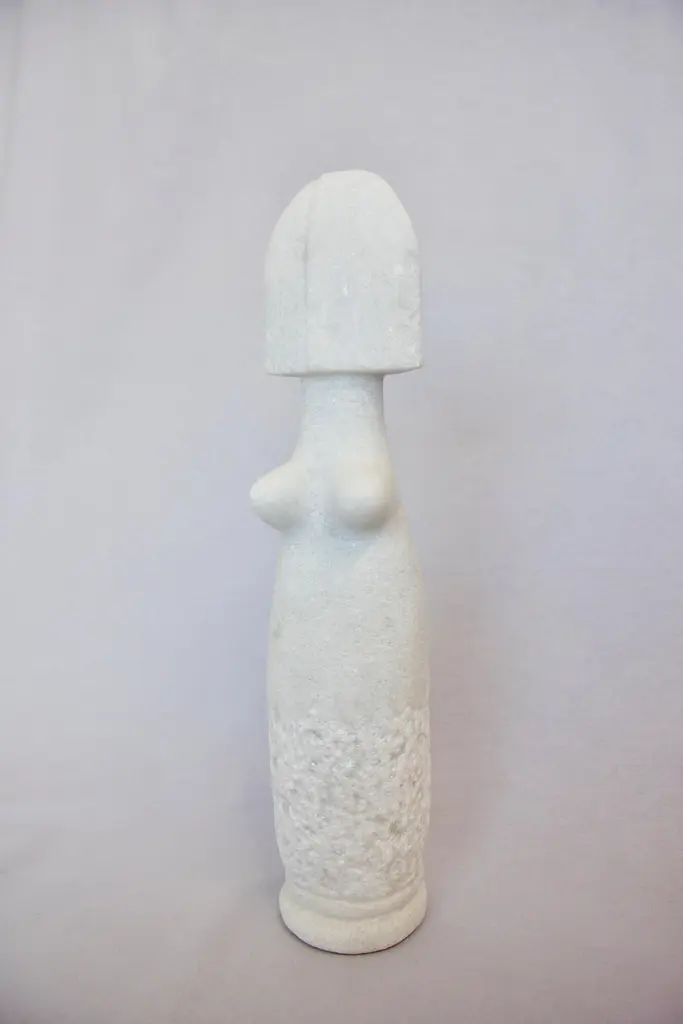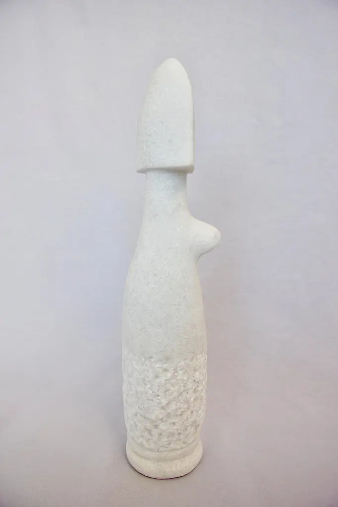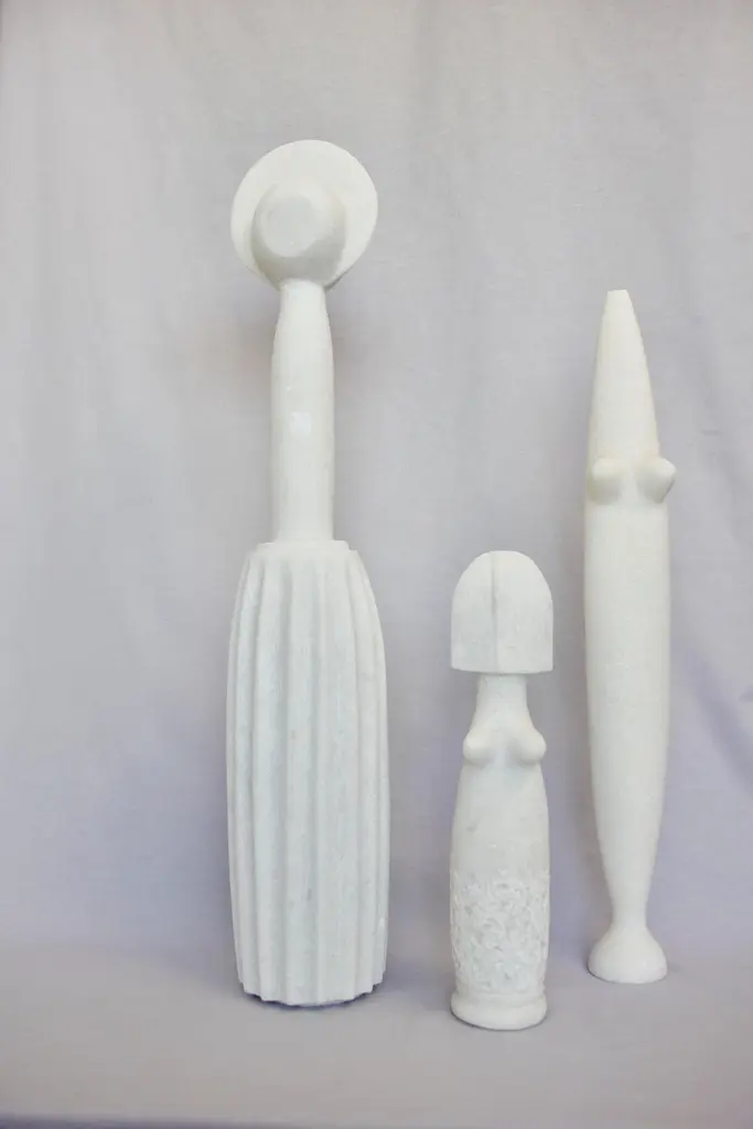 Ensemble of sculptures - naxian marble shelf sculptures - Tom von Kaenel.Dimensions: Hera: 75 x 7 x 7 cm Aphrodite: 62.5 x 5 x 5 cmLittle woman: 37 x 7 x 7 cmUnique artworks signed by Tom von KaenelRare naxian marble.All the artworks of Tom von Kaenel are unique, handcrafted by himself.The stones all come from the surrounding marble quarries of the island. The naxian marble is of white, grey or yellow-brown color, its structure is crystalline. No measuring instruments other than compasses and scales are used in the production of an object. The eye decides on the finalshape. The crystalline surfaces are shimmering. This gives the object a unique liveliness.Tom von Kaenel, sculptor and painter, was born in Switzerland in 1961. Already in his earlychildhood he was deeply devoted to art. His desire to bring beauty to the world is Tom vonKaenel’s inspiration, drive and source for the creation of his works.Already during his training as a technical draughtsman and later as a teacher of pictorial design, he devoted himself to painting and three-dimensional work. Tom von Kaenel has exhibited his work in various solo and group exhibitions. For seven years he was represented by Galerie Ute Barth in Zurich.Today Tom von Kaenel lives and works on the island of Naxos. Everything in his environment inspires and shapes his work. He creates objects and sculptures out of Naxian marble in craftsmanship liveliness and timeless beauty.