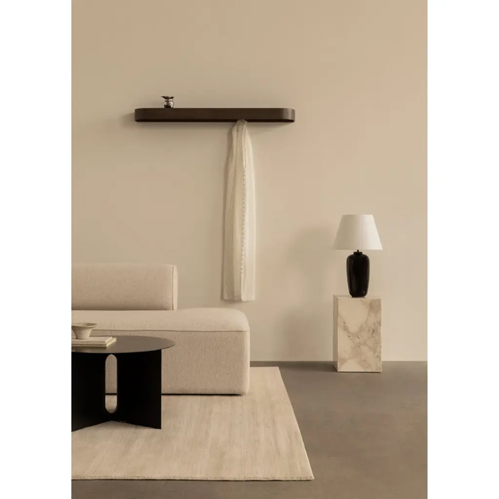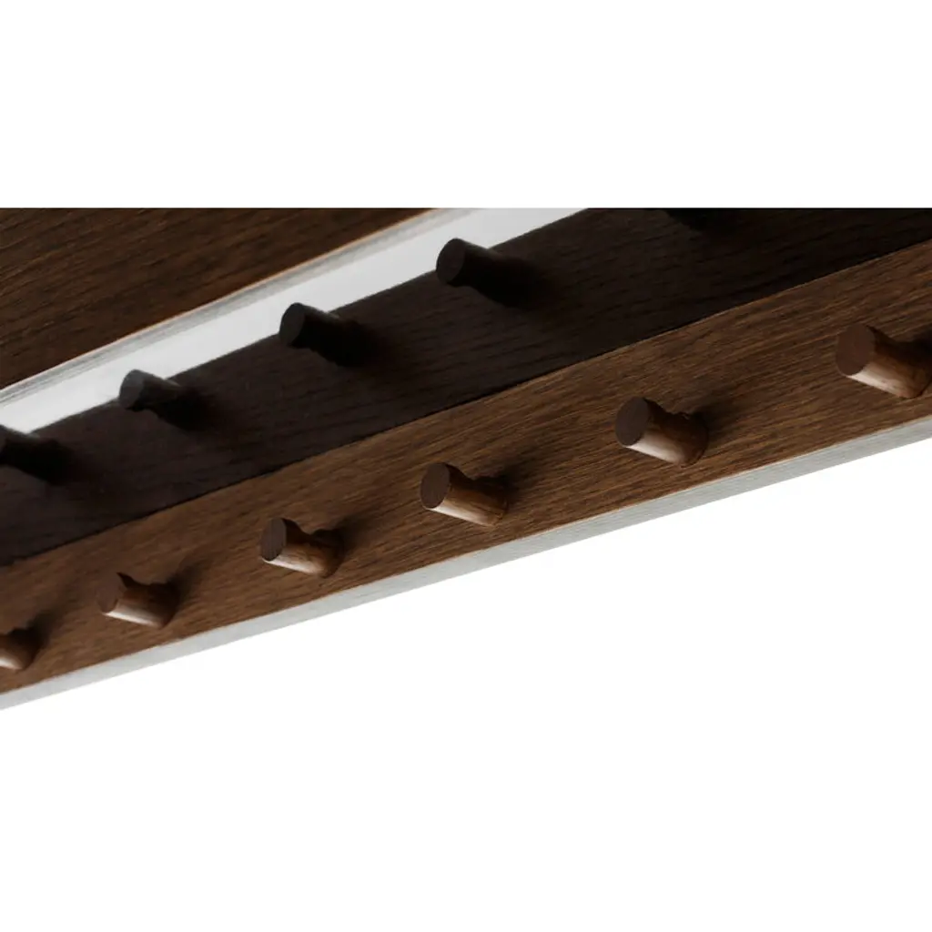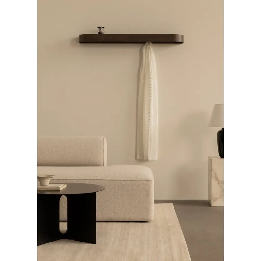 Audo Copenhagen's Epoch shelf is created for beauty and practicality. Designed by Nina Bruun, the hanging hooks of the wall shelf are cleverly concealed behind a gently curving wooden panel, which calms and clarifies the space – we all know that a hallway can easily fall into a state of chaos! The upper level serves as a handy shelf, providing storage space for many small household items. For this purpose, the Epoch shelf is perfect for a smaller hallway where the space doesn't allow a chest of drawers, but keys, sunglasses and headphones still need to be put somewhere when you get home. The Epoch shelf with rack is made of oak veneered plywood. The natural warmth of the wood only adds to the serene atmosphere.