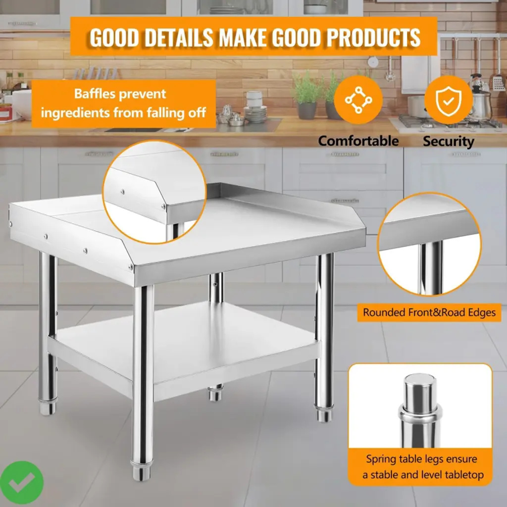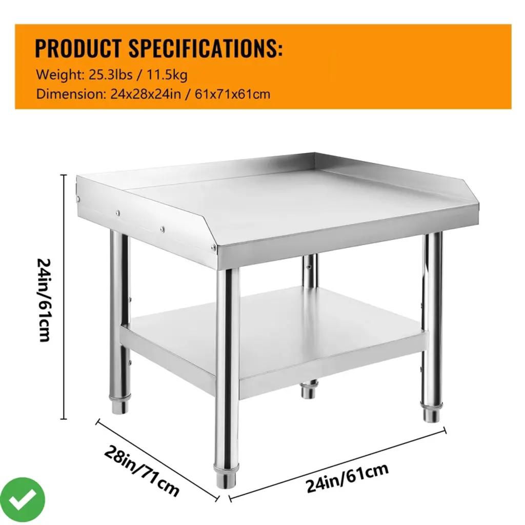 Equipment Grill Stand Table | Stainless Steel 24"x28"x24" | 1000 lbs Top Shelf, 220 lbs Bottom Shelf | Adjustable Legs with 2" Edge Baffle | Ideal for Commercial Kitchens, Hotels, and Homes.