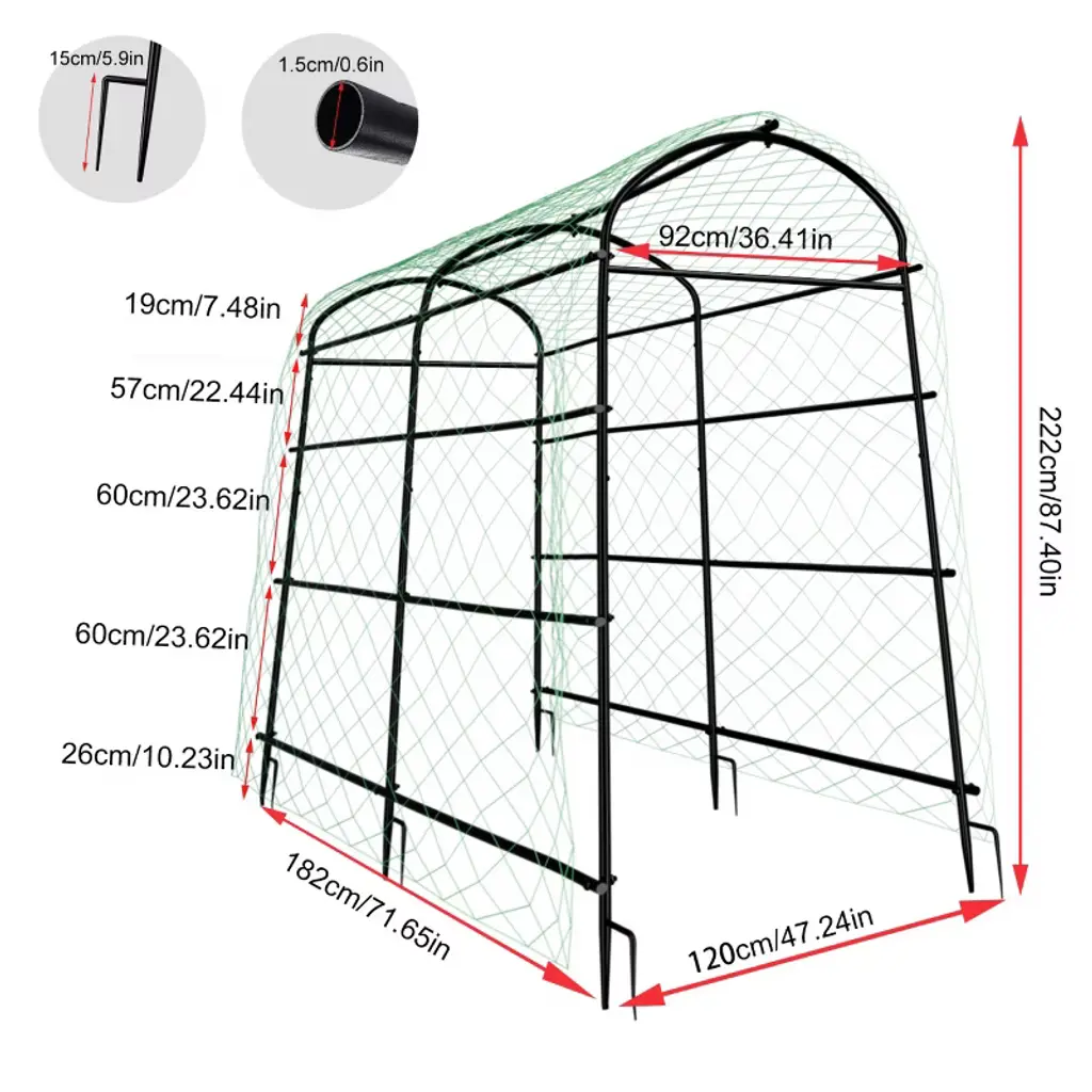 Transform your garden into a thriving vertical oasis with our sturdy iron trellis frame! Engineered for climbing plants like cucumbers and grapes, it boosts growth, airflow, and yields while saving space. Rust-resistant coated pipes ensure durability, and anti-slip grooves secure vines. Includes nylon netting, soil stakes, and cable ties for quick assembly—no tools needed! Perfect for patios, veggie patches, or decorative displays. Grow smarter, not harder!