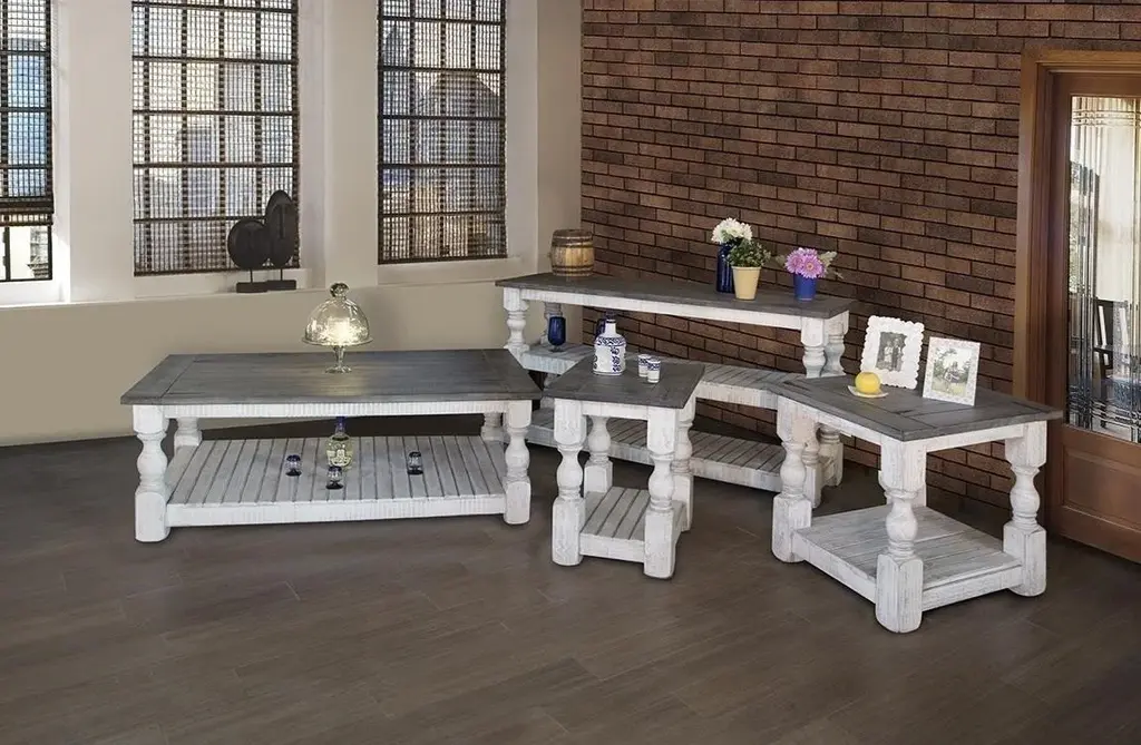 Complete your dream living room with this solid wood end table. Solid pine construction and a two-tone finish give this piece a stylish and durable look and feel. The shelf below the table top offers the idea space to set a basket, decorations, or any other things you may need tucked away in your living room. The somewhat traditional look of each table leg helps to make this piece stand out and feel like a timeless addition to any home.