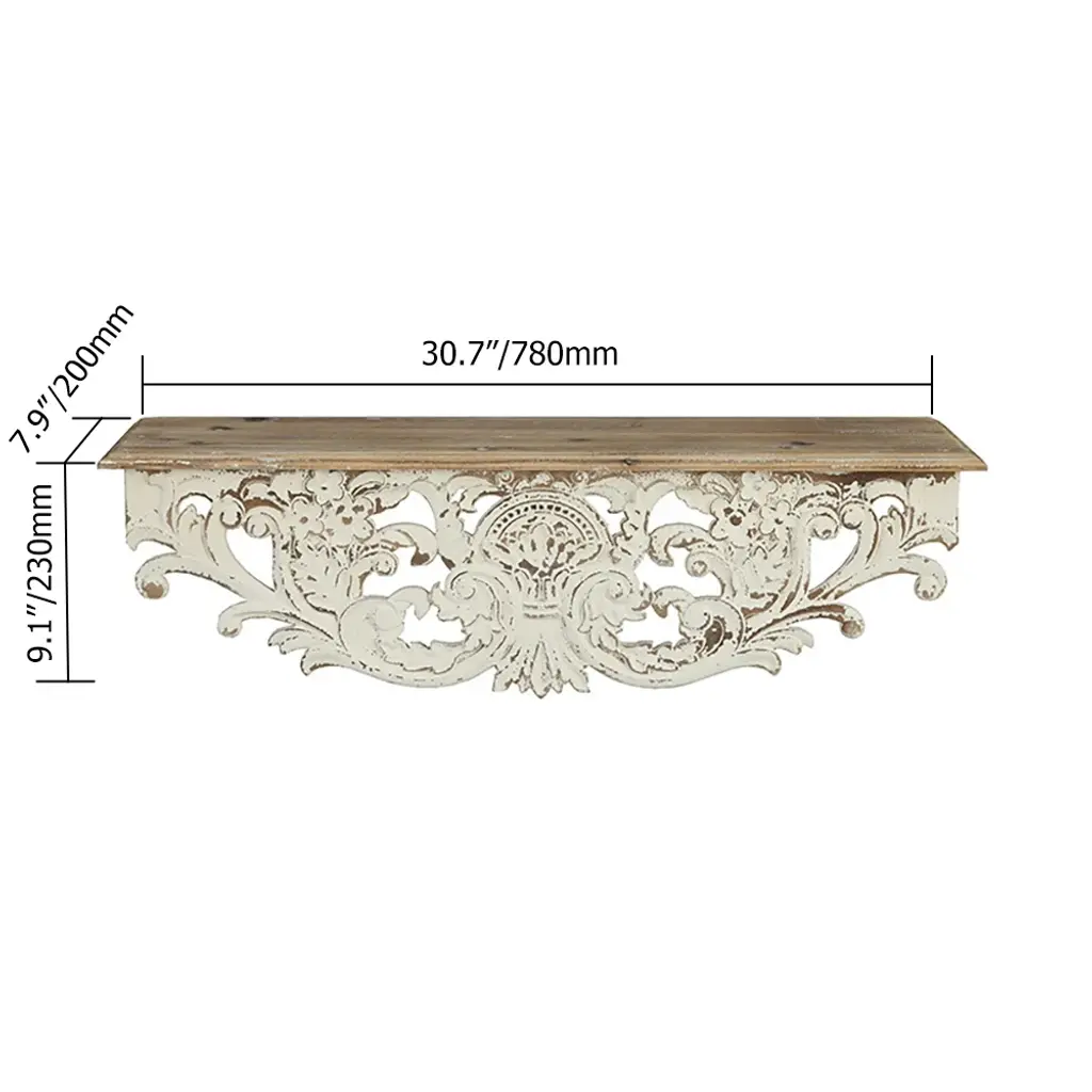 Reorganize your home with vintage wall-mounted decor shelving. Freeing your countertops from clutter, this set of shelves is ideal for displaying your collectibles, valuables, keepsakes, photo frames, plants, and more. Made from solid wood, the shelving achieve a vintage look and exquisite carved design that will enhance the aesthetic flare of any home. Not only does the shelving add a decorative touch, but it also creates a versatile storage&display space for storing smaller items, it is both practical and ornamental.