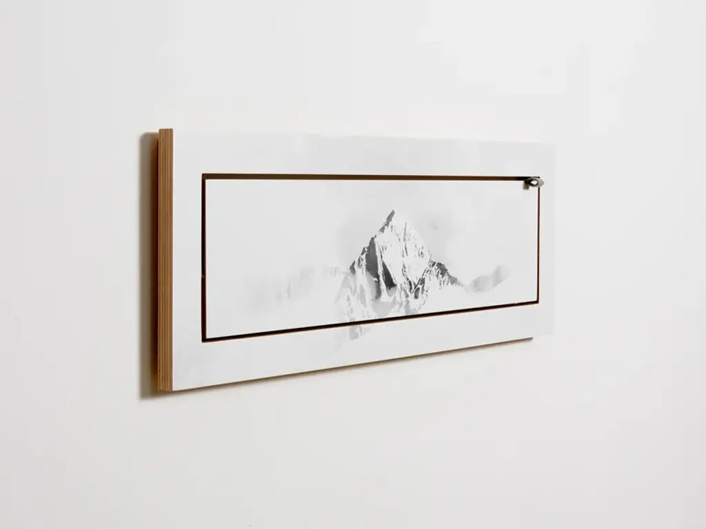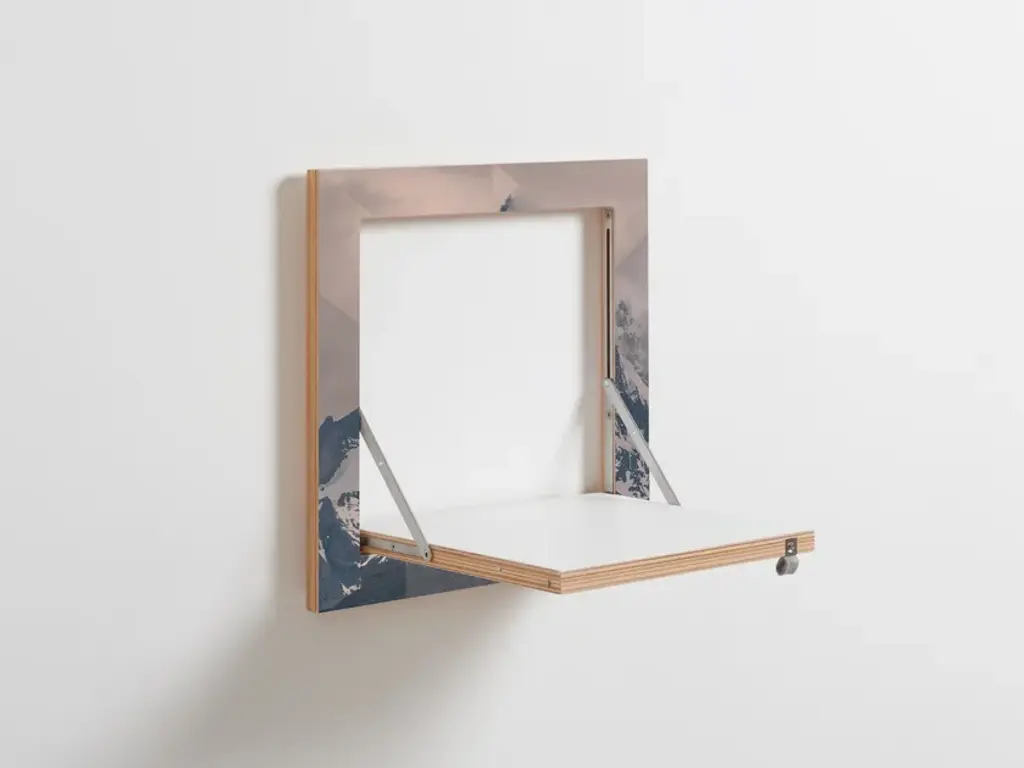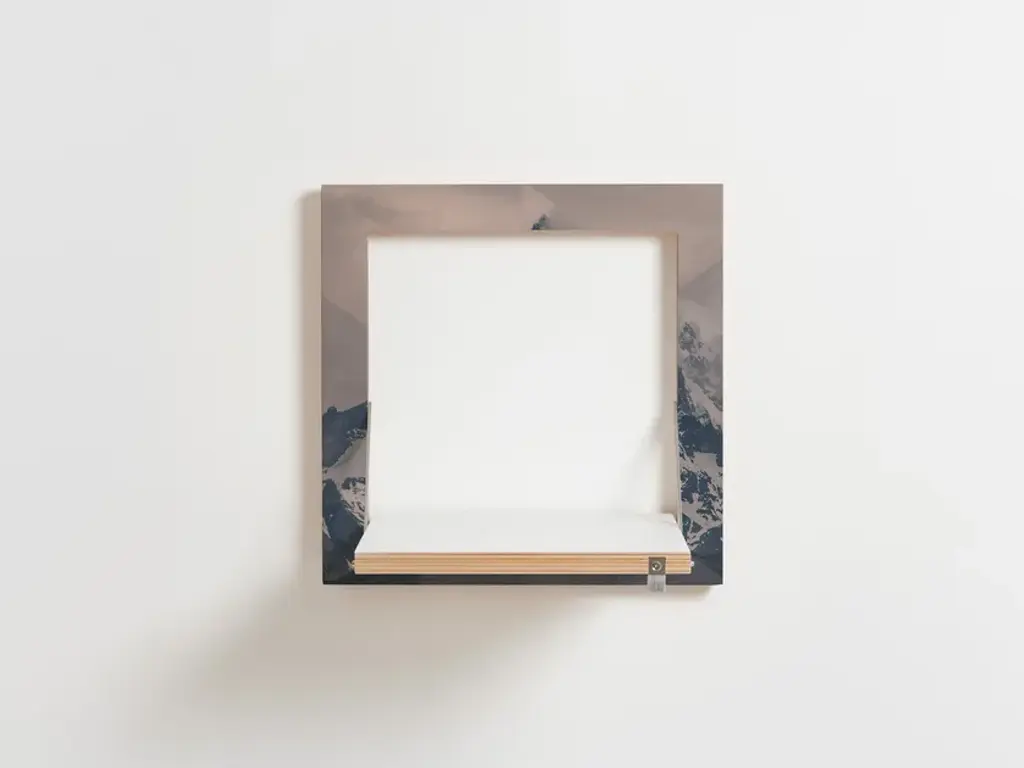 Fläpps 40x40x1 - Perfectly Square. Fits anywhere – even in the smallest shelf system. This is the perfect hallway shelf, night table, vase holder or cookbook shelf. There when you need it – beautiful when you don’t.The whole Fläpps-Collection is printable andcombinable with each other. That gives anyone the freedom to individually compose their wall-setup, and change it whenever they are undecided. A wall mounting mechanism, especially designed for this purpose, makes it possible. It consists of two wooden slats that can effortlessly be connected to the wall by using the provided stencil. After that Fläpps can be mounted safely and stable. In this way no abrasion occurs to the product while mounting and demounting so nothing stands in the way for undecided people. No matter how often they like to move or reposition their product. AMBIVALENZ - STAY UNDECIDED!Material: birch plywood, stainless steelDimensions: 400 x 400 x 20mmFinish: Lacquer