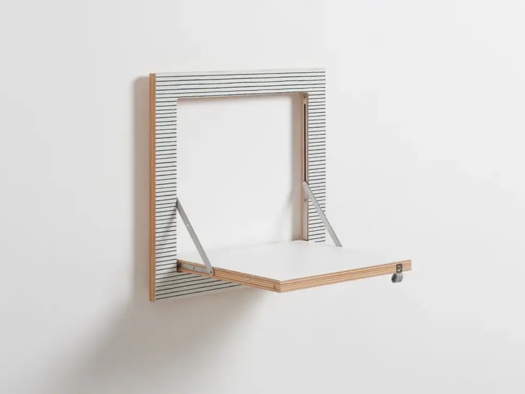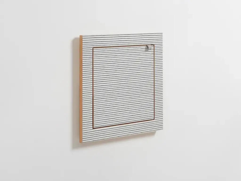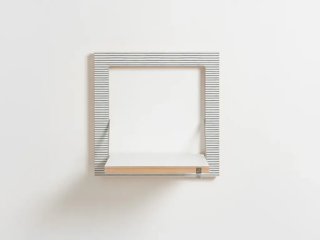 Fläpps 40x40x1 - Perfectly Square. Fits anywhere – even in the smallest shelf system. This is the perfect hallway shelf, night table, vase holder or cookbook shelf. There when you need it – beautiful when you don’t.The whole Fläpps-Collection is printable andcombinable with each other. That gives anyone the freedom to individually compose their wall-setup, and change it whenever they are undecided. A wall mounting mechanism, especially designed for this purpose, makes it possible. It consists of two wooden slats that can effortlessly be connected to the wall by using the provided stencil. After that Fläpps can be mounted safely and stable. In this way no abrasion occurs to the product while mounting and demounting so nothing stands in the way for undecided people. No matter how often they like to move or reposition their product. AMBIVALENZ - STAY UNDECIDED!Material: birch plywood, stainless steelDimensions: 400 x 400 x 20mmFinish: Lacquer