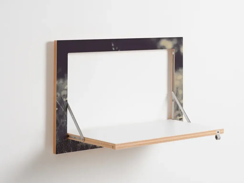 The midsized Fläpps Wall shelf adheres to standards. Kept in 3:2 format it gets on well with photographers critical eyes. With its narrow 60cm it harmonizes perfectly with fit- ted kitchens, or even folders and of course everything else stable shelfs are made for.Material: birch plywood, stainless steelDimensions:Folded 60 x 40 x 2 cm + 1 cm wall mountTable unfolded: 50 x 30 cmFinish: Lacquer, UV printed