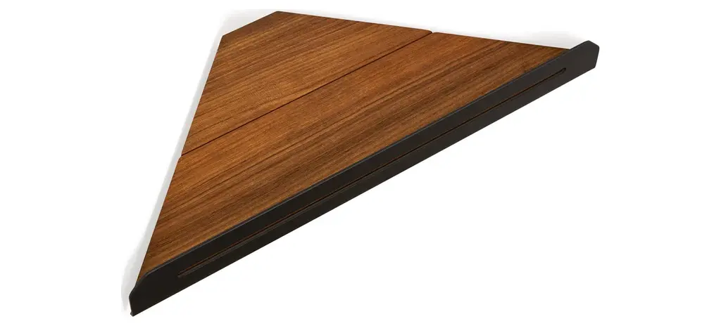 Keep all your bath necessities well organized and within reach with this space-saving Elegant Corner Shower Shelf with a natural teak wood surface. The corner shelf features a sleek floating style design that complements any bathroom décor. It can be easily installed in the corner of your shower or bath where extra shelving or spacing would be beneficial. It is crafted from durable, water-resistant #304 stainless steel and natural teak wood which is ideal for long-lasting use. Seachrome uses 100% heartwood grade pieces of the finest natural teak wood. Very stable against natural elements, teak wood has a higher hardness level, making it bug, rot, and water-resistant. The teak wood insert offers a rich and timeless look to your bath with each shelf’s own unique natural wood grain pattern.DIMENSIONS: 14.2” L x 6.1” W x 1” H; Corner shelf with a natural teak wood insertTEAKWOOD: The floating shelf is crafted from a beautifully rich and durable heartwood teak wood. The teak’s unique natural grain displays a dynamic brown complexion that brightens your shower experience with warmth and tranquility. Teak wood is very stable against natural elements, making it resistant to water, deformation, and corrosion, offering a rich natural look to your bath, achieving a spa-like serenityFLOATING DESIGN: The storage organizer shelf features a sleek corner floating design for a clean, modern, and timeless look. It is perfect for storing your shampoo, conditioner, facial cleanser, or any other essential items. The shelf includes a lipped edge to keep your items securely in placeEASY TO INSTALL: The shower shelf is quick and easy to install. 6 #10 X 2-1/2" Phillips pan head screws are provided for installationVERSATILITY: The Shelf can be widely used in the bathroom, lavatory, kitchen, bedroom or anywhere else you want to display, store, or organize itemsBUILT IN THE USA: Seachrome accessories are thoroughly assembled, tested, inspected in the USA for exceptional quality and made with 100% recyclable materials, contributing to LEEDv4 credits in finished form, always providing safety and security in the shower without needing to sacrifice style