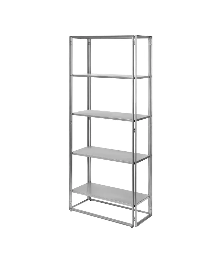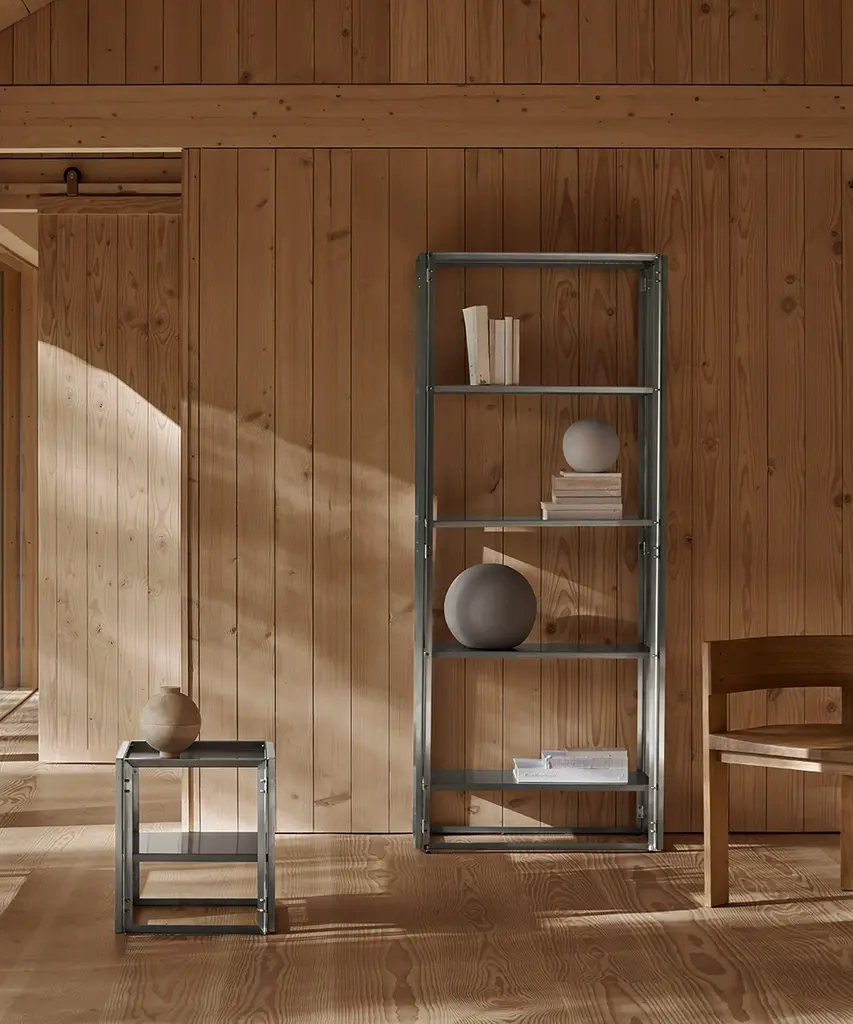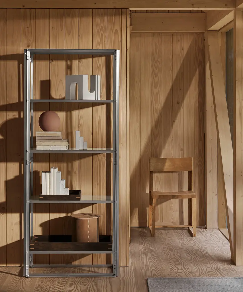 The Foldable Shelf blends industrial and modern aesthetics. Its design focuses on clean, straight lines and an open structure, suiting the minimalist yet functional needs of urban living. Constructed with high-quality brushed stainless steel and robust L-profiles, the bookshelf has a sleek finish. Bold bolts and visible joints add an industrial touch, highlighting the beauty of its construction. Ideal for those needing to maximize space without sacrificing style, its versatile shelves offer ample room for books, decorative items, and art, making it a chic addition to any compact city apartment or modern home office.Designed by Kristina Dam Studio in Copenhagen, Denmark.