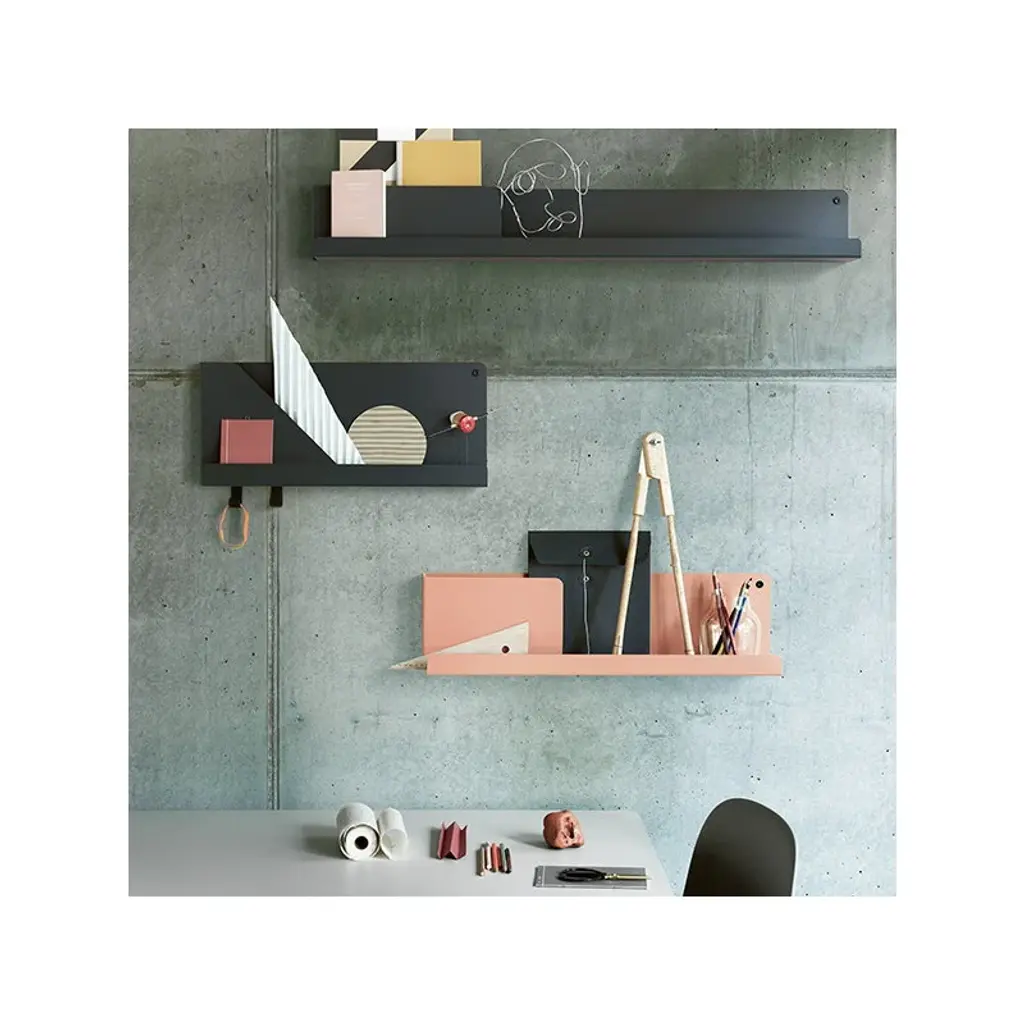 Muuto’s Folded shelves feature a sophisticated, minimalist form that consists of a single folded sheet of steel. Designer Johan van Hengel drew his inspiration from the play of layers and shadows and created a collection of simple metal shelves with pocket-like elements for organizing and supporting objects. The Folded shelves are perfect for storing and displaying both everyday essentials and favorite keepsakes. They are available in several sizes and come with convenient hooks for hanging clothes, bags, accessories and towels.