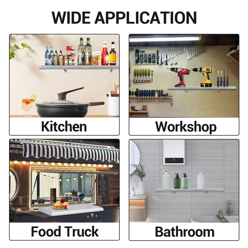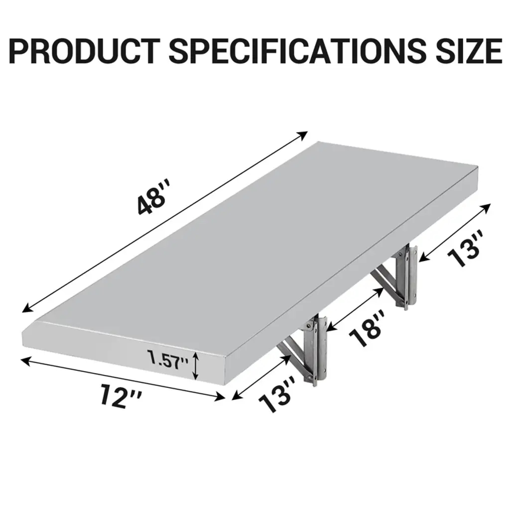 "Stainless Steel Folding Shelf 48" x 12" - Commercial Grade Wall Mount Drop Down Shelf for Food Truck, BBQ, Restaurant"Product Overview:The TROPOW Folding Concession Shelf provides professional-grade workspace solutions with its 48" x 12" 304 stainless steel construction. Designed for high-demand food service environments, this wall-mounted shelf features a space-saving fold-down mechanism, 1.6" thick steel surface, and tool-free operation - perfect for optimizing cramped kitchens and food trucks.Key Features & Specifications:Commercial 304 Stainless Steel Build48" L x 12" W x 1.6" thick (supports 100+ lbs)Rust/corrosion-resistant for wet environments49.02" x 12.6" x 3.94"H (folded dimensions)Instant Space OptimizationOne-hand push-snap folding (no tools required)Wall-mounted design maximizes floor spaceAuto-locking mechanism when fully extendedHygienic Food-Safe SurfaceSeamless stainless construction (FDA-compliant)No crevices for bacteria accumulationHose-washable for commercial sanitationQuick Professional InstallationIncludes all mounting hardwarePre-drilled holes for stud/wall mounting30-minute assembly with basic toolsMulti-Industry ApplicationsFood trucks (condiment stations)BBQ setups (tool/meat prep surface)Restaurant kitchens (additional workspace)