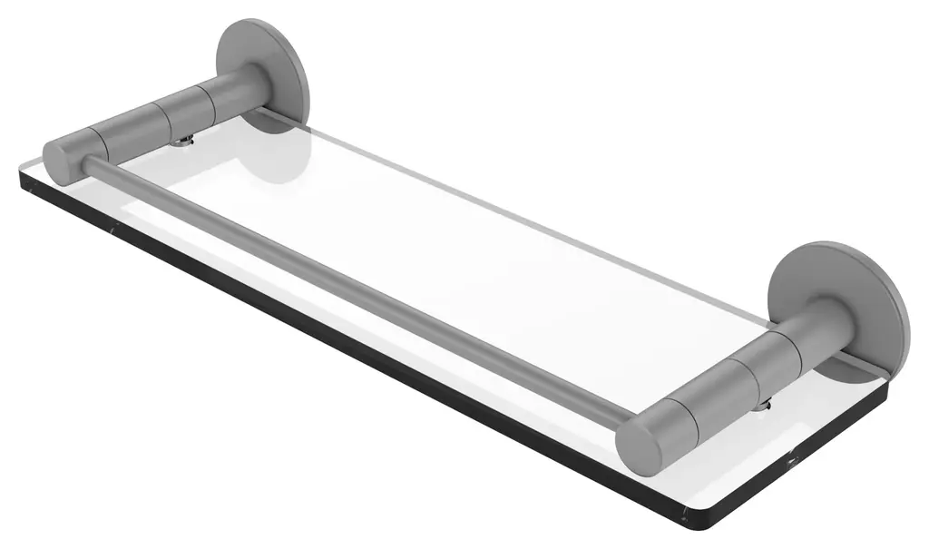 Add space and organization to your bathroom with this simple, contemporary style glass shelf. Featuring tempered, beveled-edged glass and solid brass hardware this shelf is crafted for durability, strength and style. One of the many coordinating accessories in the Allied Brass Fresno Collection, this subtle glass shelf is the perfect complement to your bathroom decor.Matte Gray, a timeless and practical color that is an intermediary between black and whiteCrafted from the Finest Solid Brass MaterialsMade with 3/8" thick tempered glass for safety and strengthConcealed Screw MountingSolid brass gallery rail will keep your items secureAvailable in a wide variety of lifetime designer finishesProducts are provided with a limited lifetime warranty