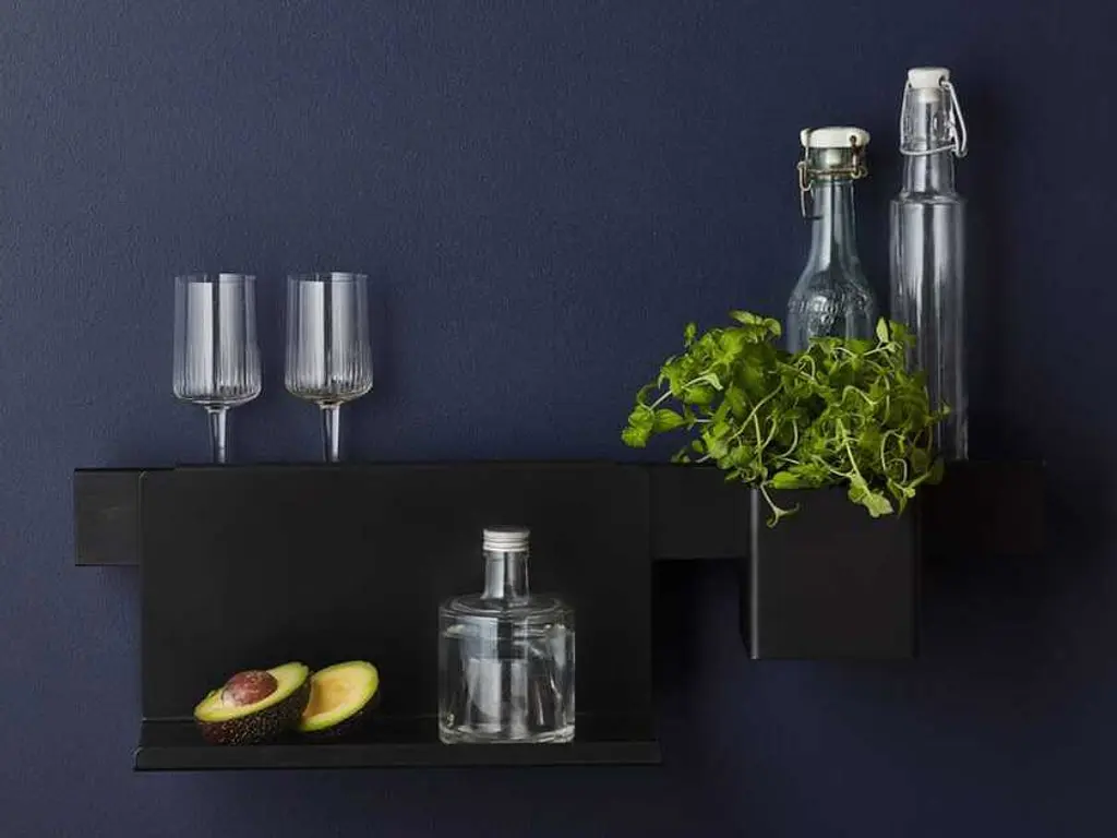 Flex rail in black stained oak is a newly arrived edition of the well-known rail, that up until now only has been available in oak. The dark stain adds a deep and rich expression to the oak and makes the structures of the wood come to life. The result is a perfect balance between the vividness of the oak and the simplicity of the design.Includes:4 tool holder bars 40 x 8.5 x H 6 cma shelf 16 x 32 x H 13 cma shelf 16 x 21 x 11 cm2 containers 10.5 x 12.5 x H 15.5 cma container 10,5 x 10,5 x H 10,5 cm2 containers 21 x 12.5 x 5 cm2 hooks 4.5 x 2.5 x H 5.5 cm2 magnets Ø40 x H 1.2 cm