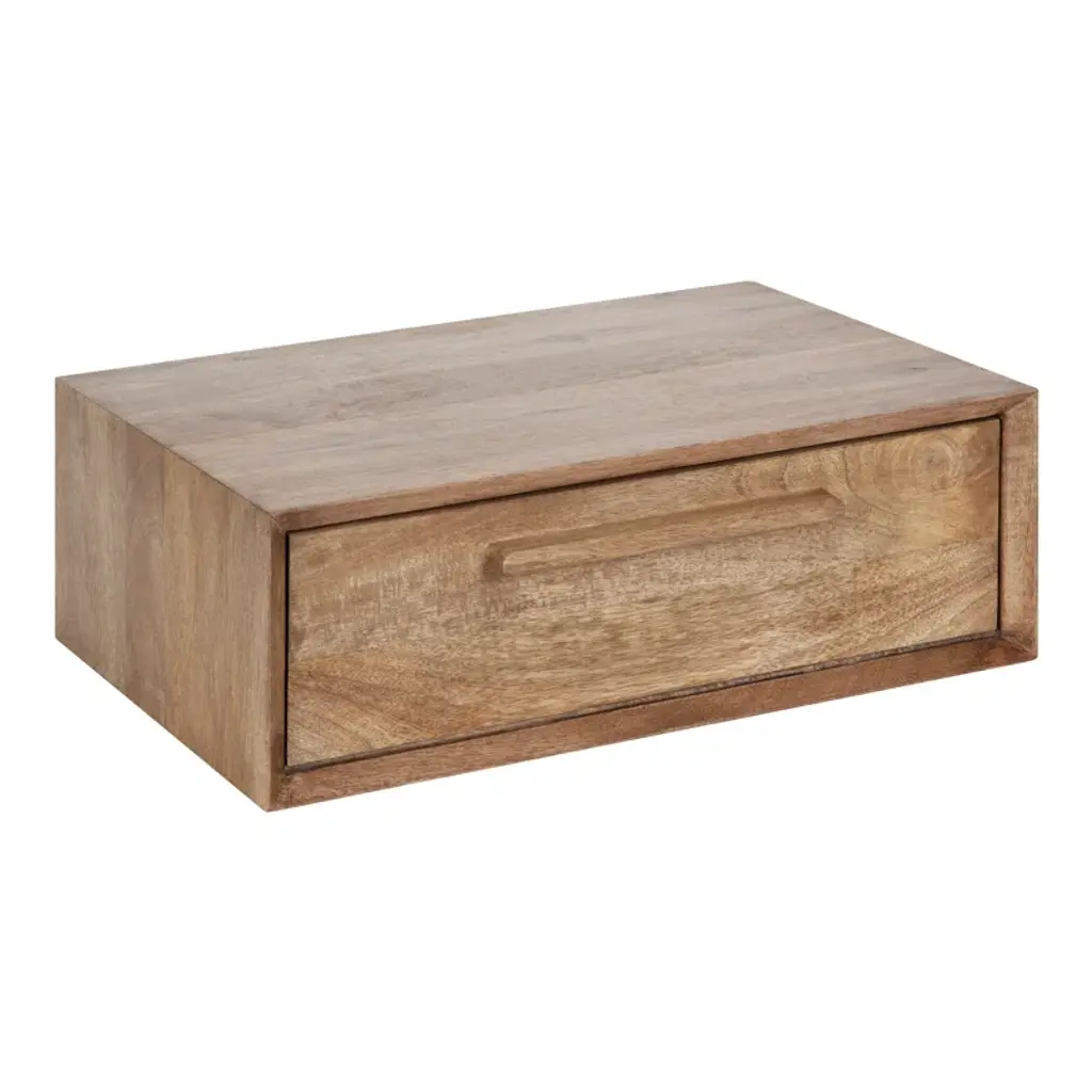 Geoffry Mango Solid Wood Floating Wall Shelf With Drawers