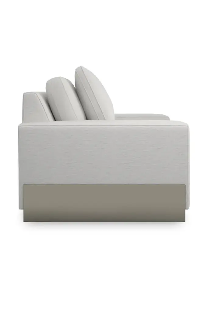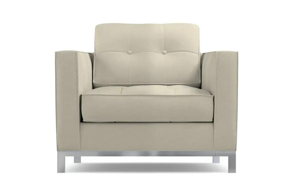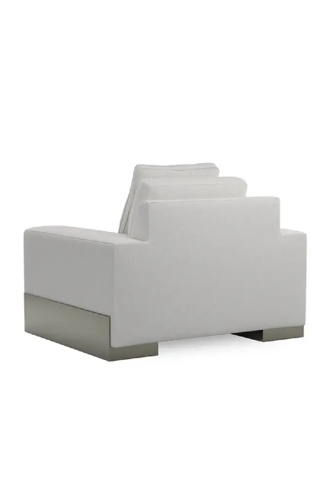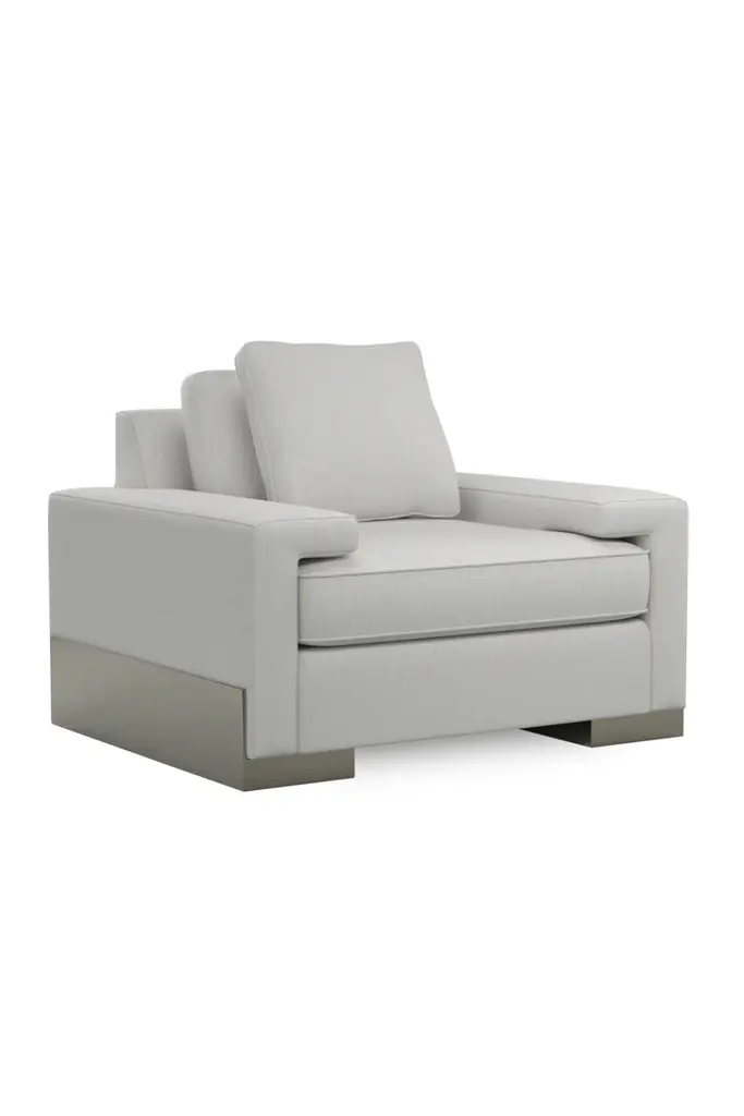 Embodying design without limits, this sublime chair adds rich character to a space. Understated charm emanates comes from its clean, linear profile where its seat cushion nests under a wide shelf-arm. Inspired by modern organic design, it features a neutral, linen-like textured fabric. An angular wood base finished in Pyrite cradles the frame and imparts a finishing touch that grounds its design presence.
