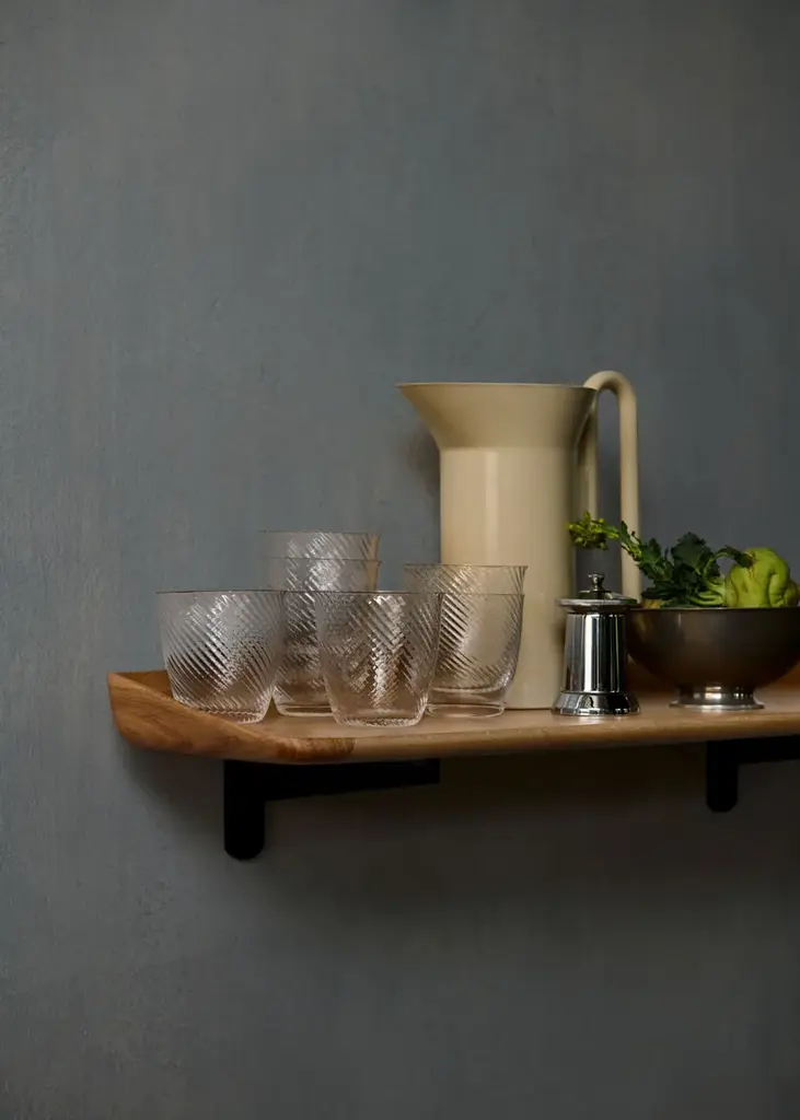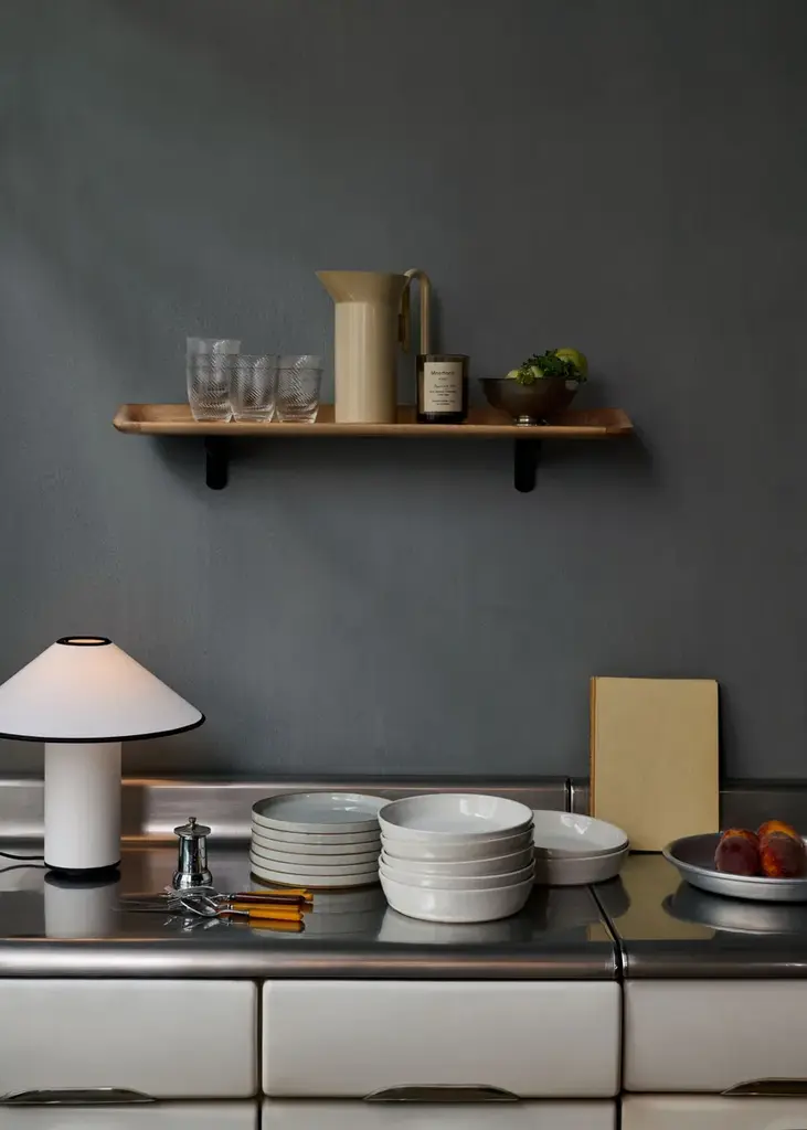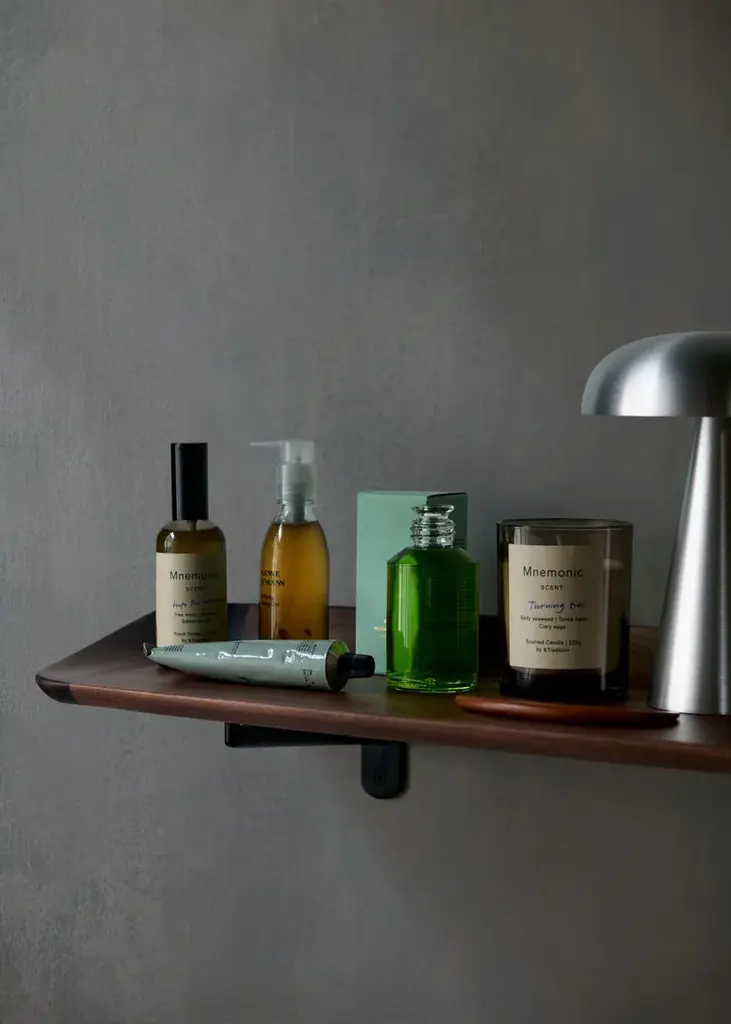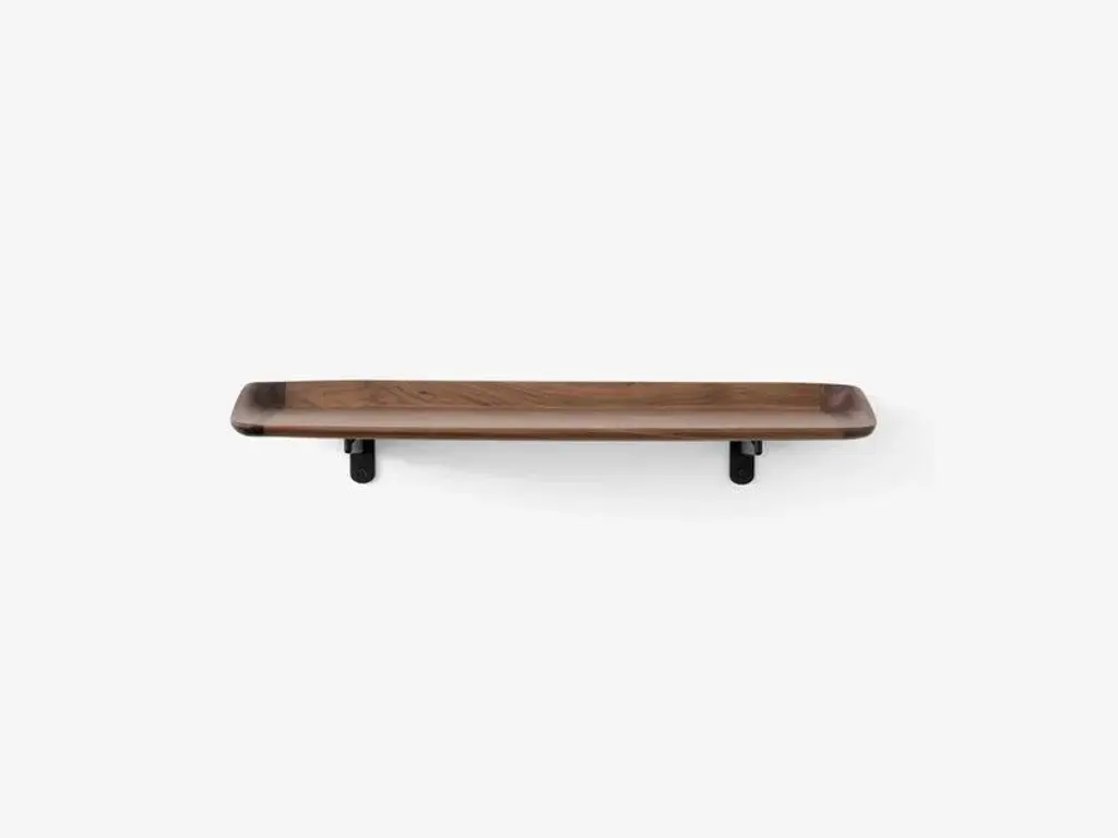 Extracting the essence of true craftsmanship, the Guild shelf was originally designed in 1954 for Peter Hvidt’s family home in Klampenborg. Subtly mirroring the curving paths of the property’s garden, the design’s pared-back, undulating form and uncompromised level of detail are defining features, resulting in a shelf of timeless appeal and exceptional composition.Product MaterialSolid oak or walnut and powder-coated aluminium.Production ProcessSolid oak or walnut wood slats are cut, glued together and shaped using a CNC machine. The shelves are then hand-sanded and coated with water-based lacquer for a smooth finish. The aluminium brackets are cast and powder-coated.VariantsOakWalnut