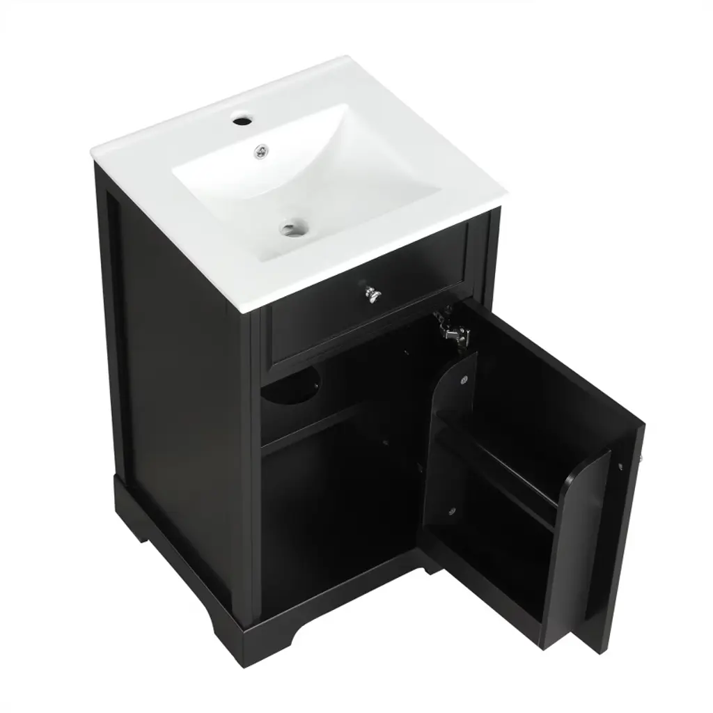 Gulches 20 Inches 1 Sink Freestanding Black Bath Vanity With White Ceramic Top Cabinet Storage Rack Adjustable Shelf
