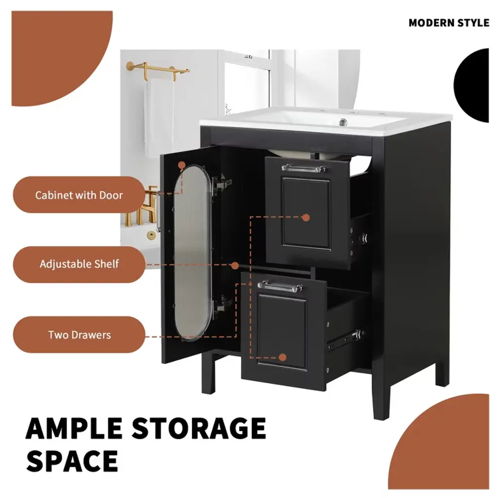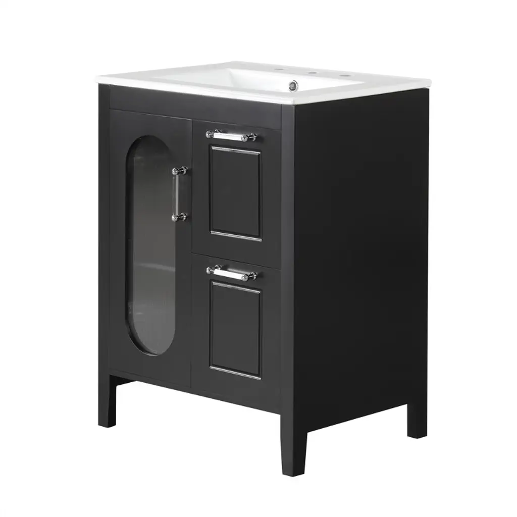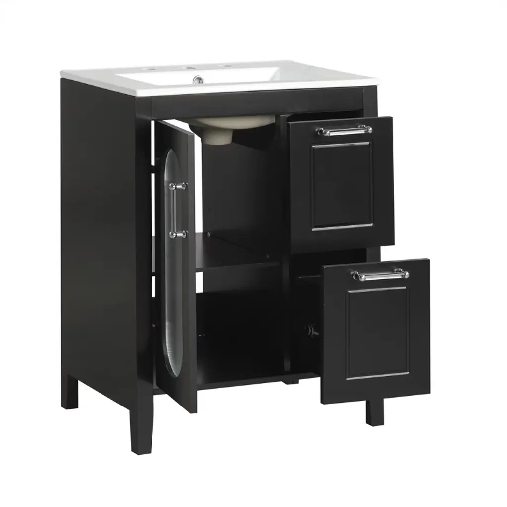 Gulches 24 Inches 1 Sink Freestanding Black Bath Vanity With White Ceramic Top 2 Drawers Cabinet Adjustable Shelf