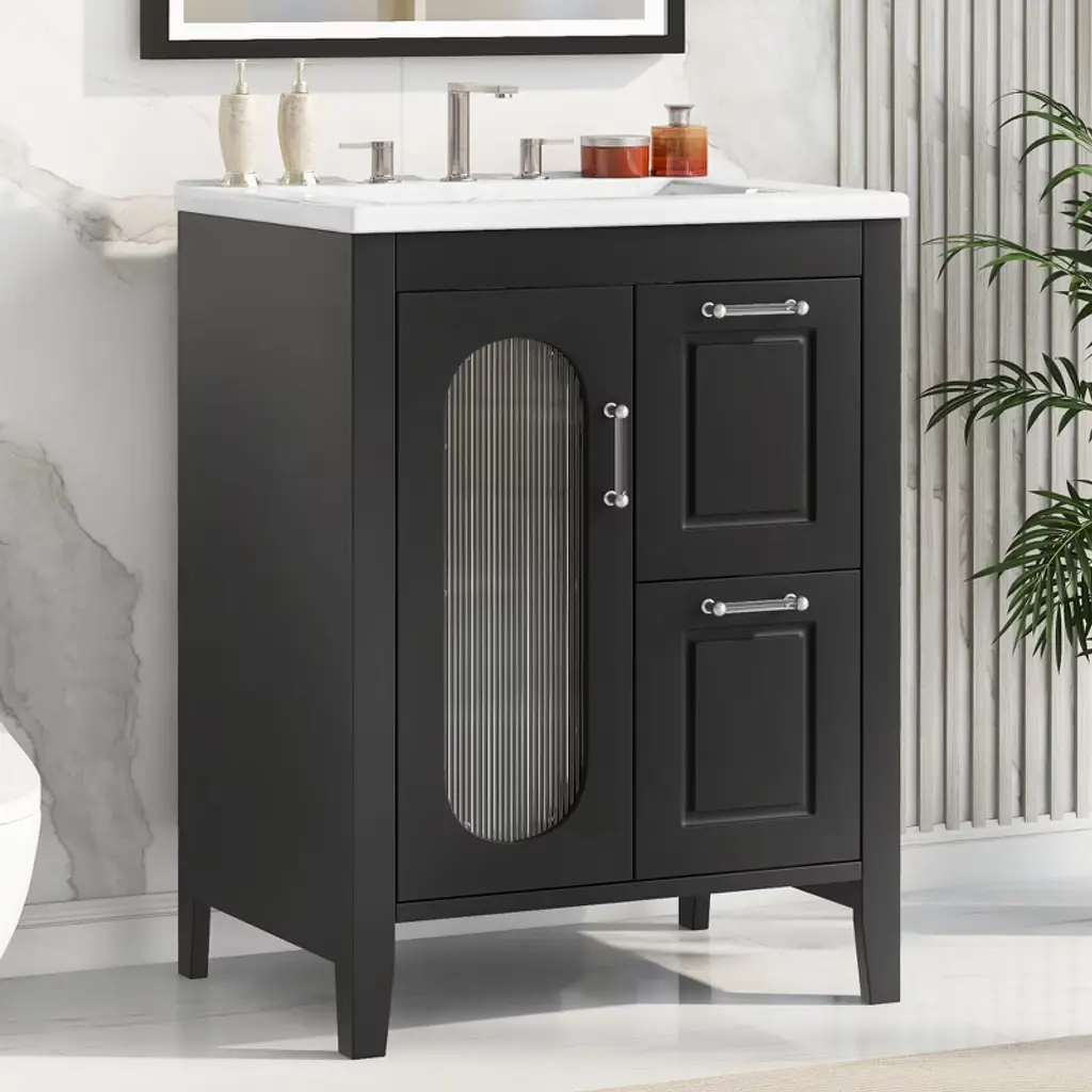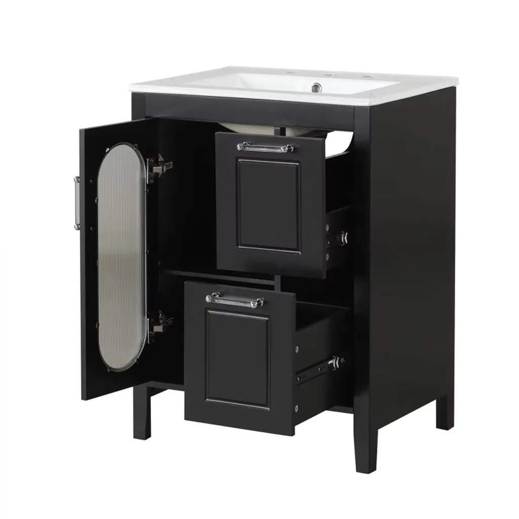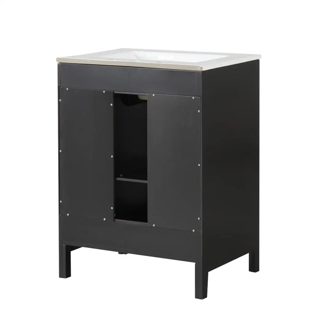 Gulches 24 Inches 1 Sink Freestanding Black Bath Vanity With White Ceramic Top 2 Drawers Cabinet Adjustable Shelf