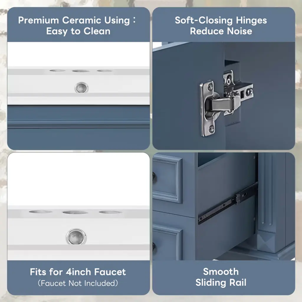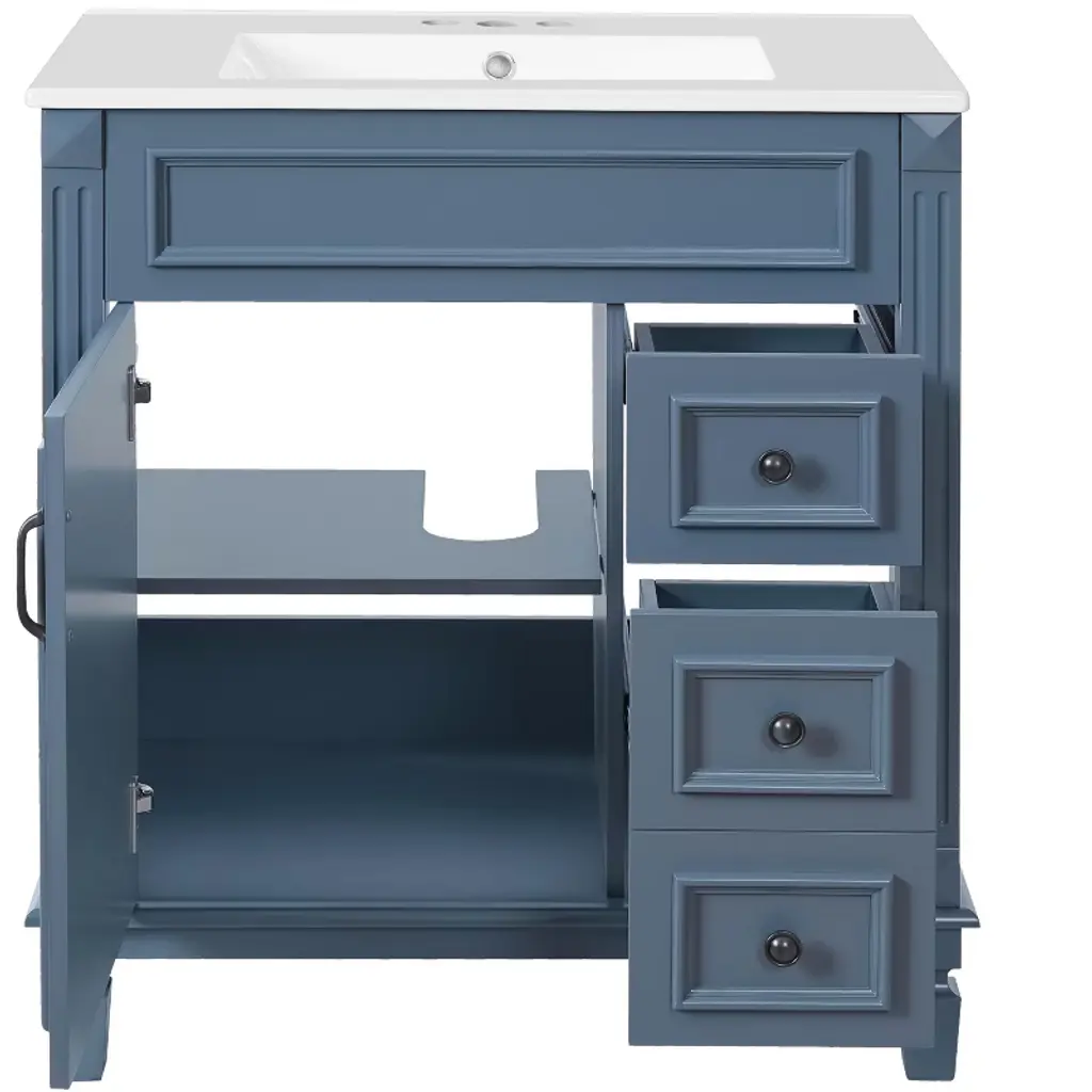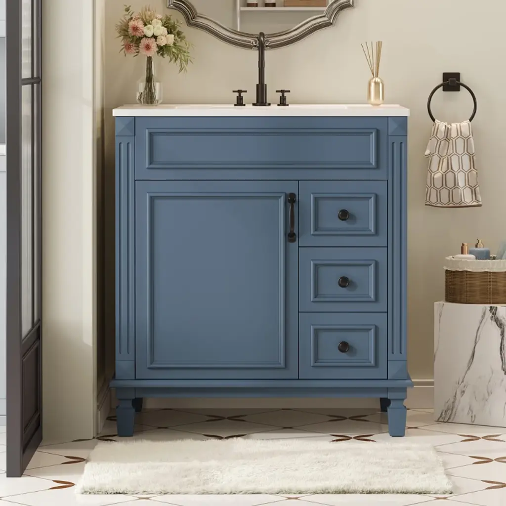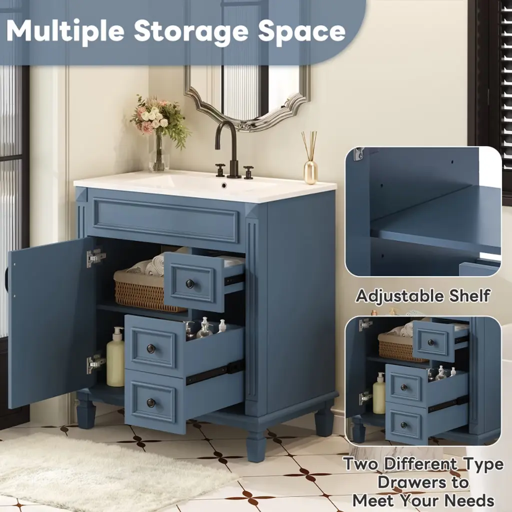 Gulches 30 Inch Bathroom Vanity With Ceramic Sink Small Bathroom Cabinet Modern 2 Drawers Adjustable Shelf French Simplicity Style Blue