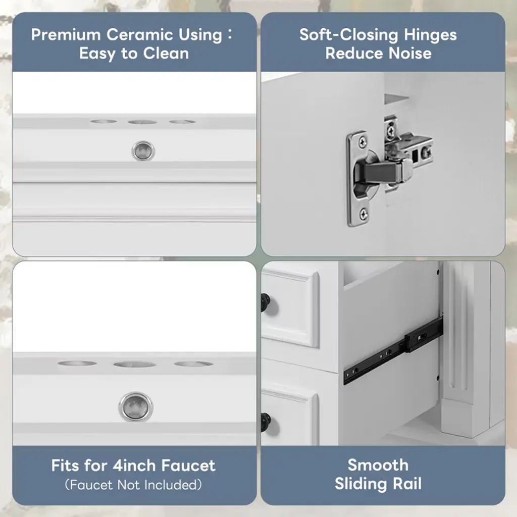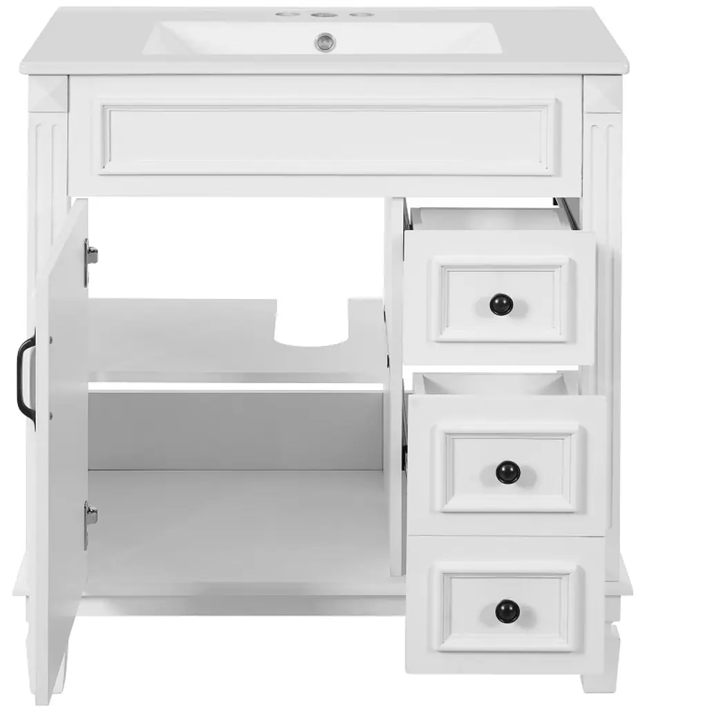 Gulches 30 Inch Bathroom Vanity With Ceramic Sink Small Bathroom Cabinet Modern 2 Drawers Adjustable Shelf French Simplicity Style White