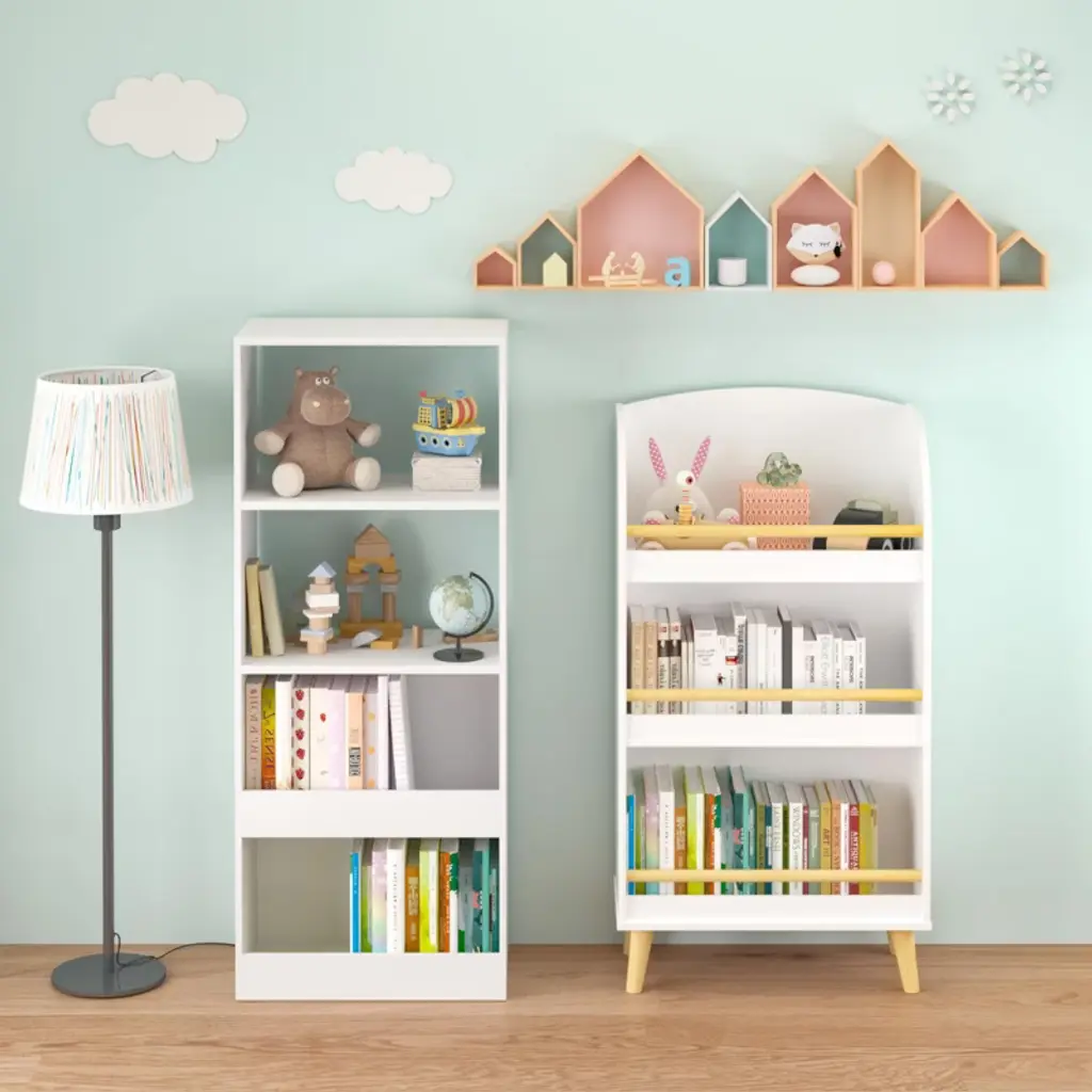 This Gulches kids bookshelf is a versatile storage solution perfect for any childrens room playroom or nursery It features a height of 37 inches and is crafted from high quality MDF material with sturdy pine legs in a crisp white finish The bookcase includes three spacious shelves providing ample storage for books toys and other items The bookcase is designed to encourage reading and organization making it easy for children to see and pick up their favorite books The dimensions of the bookcase are 20 inches in width 9 inches in depth and 37 inches in height The package includes one bookcase complete with detailed instructions and all necessary accessories for easy assembly