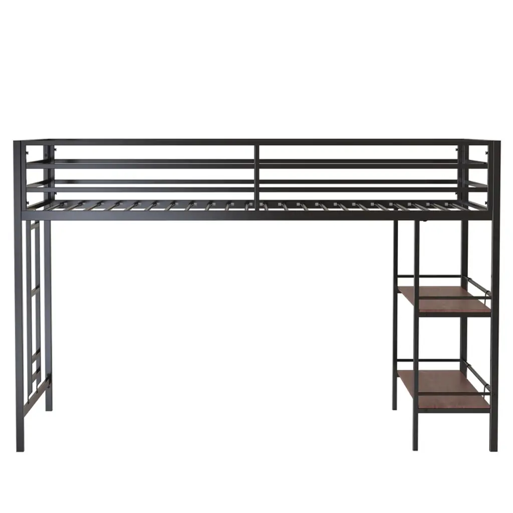 Elevate Your Child's Room with Our Sturdy Junior Twin Loft Bed in Black with Cinnamon Wood Shelf! This chic loft bed not only saves space but also adds a touch of warmth with its stylish cinnamon wood shelf, perfect for books, toys, or decorative items. Designed with safety in mind, it features a secure guardrail and an easy-to-climb ladder, making it a practical choice for kids. The elevated design creates a cozy sleeping nook while leaving ample room for play or study underneath. Give your child the ultimate bedroom experience where imagination and comfort come together in perfect harmony!