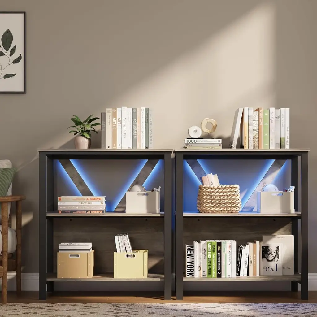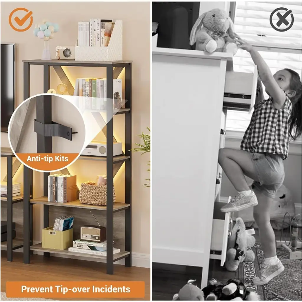 This rustic industrial bookshelf combines sturdy construction with modern features, offering a versatile and stylish storage solution. Crafted from high-quality carbon steel and MDF, it ensures stability and durability, enhanced by secure shelving and anti-tip straps for safety. The built-in ambient lighting with app control and music synchronization adds a unique, customizable atmosphere to any space. Easy to assemble and capable of holding heavy items, it’s perfect for displaying books, collectibles, plants, and more.