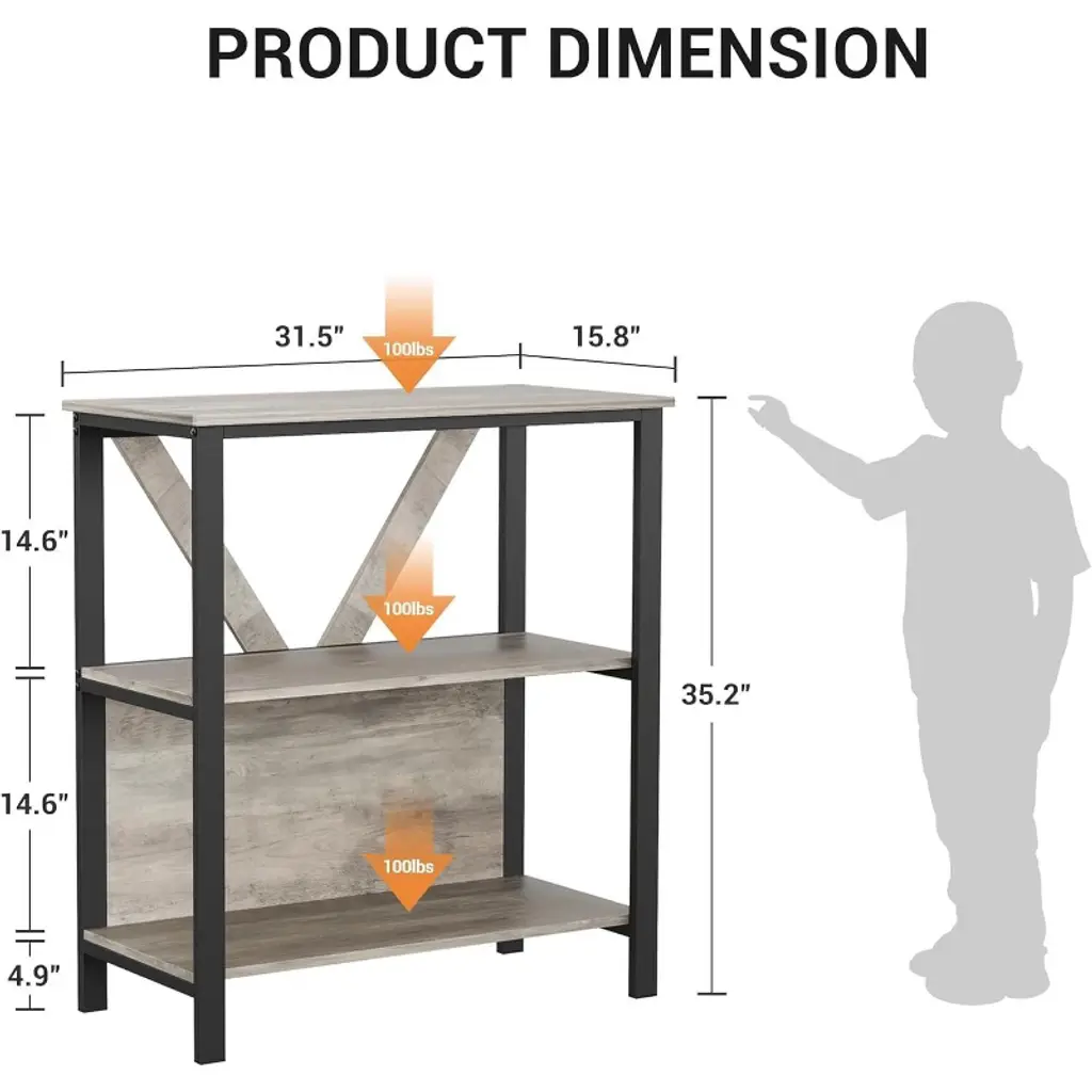 Gustowave 3-tier Book Shelf - Bookcase With Open Display Shelves Wood And Metal Standing Bookshelf With Storage Rack