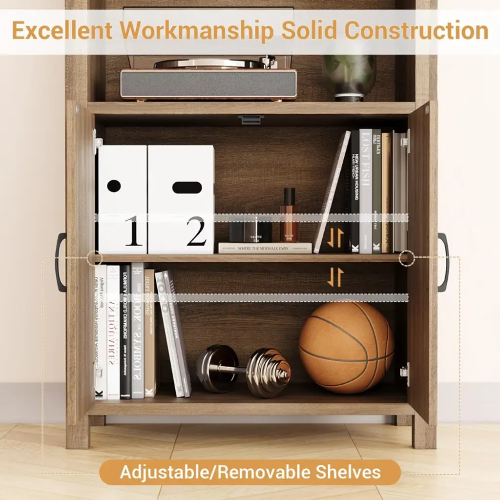 This tall, 5-tier farmhouse-style bookcase offers a perfect blend of open and closed storage with three open shelves and two-door cabinets. Crafted from durable 0.9-inch thick MDF with a waterproof finish, it ensures long-lasting use while protecting your items from dust. Featuring adjustable shelves and an anti-tip design, this versatile piece suits living rooms, bedrooms, home offices, and kitchens, providing both style and functionality.