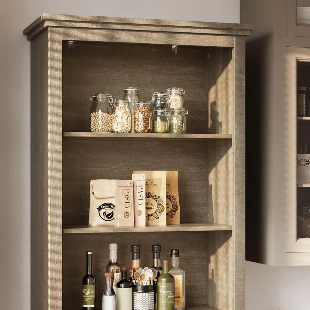 Gustowave Farmhouse Narrow Tall Linen Tower - 66.5" Freestanding Bathroom, Living Room, Kitchen Storage Cabinet With 5 Shelves & Adjustable Shelf