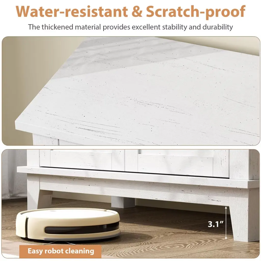 Gustowave Farmhouse Storage Cabine 3-tiers Adjustable Shelf With 7 Gears, Kitchen & Dining Room Organizer, Multi-functional Entryway Cabinet, White