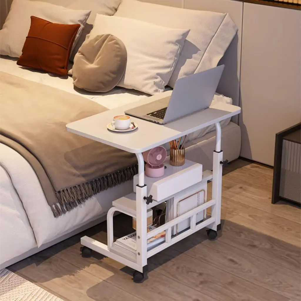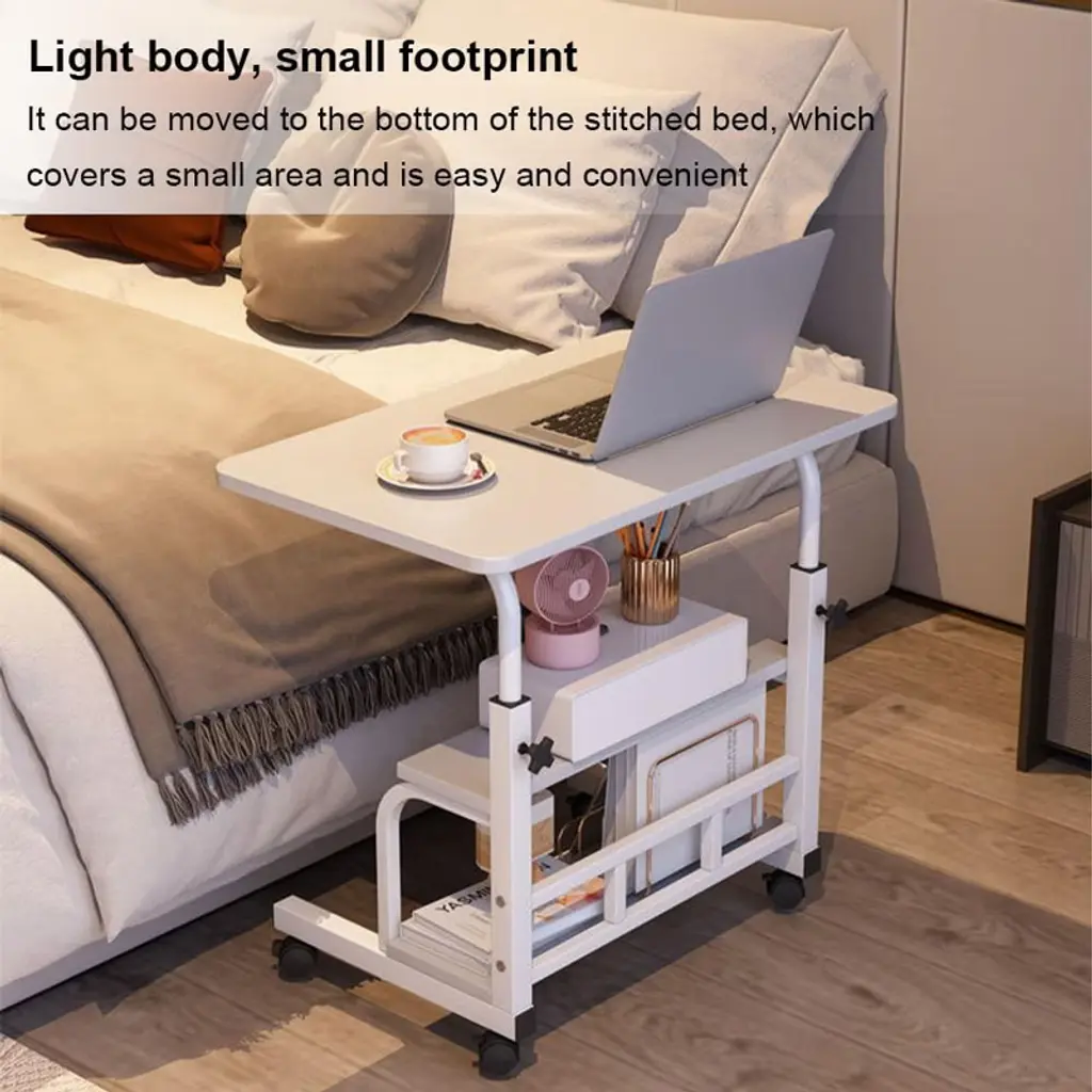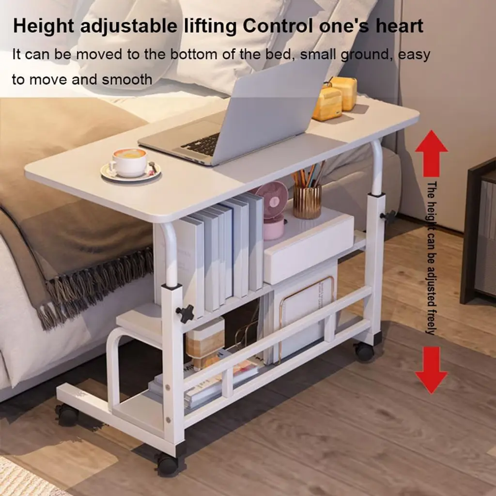 Gustowave Portable Rolling Desk With Wheels, Adjustable Height Mobile Computer Desk With Storage Shelf For Home Office Study, White