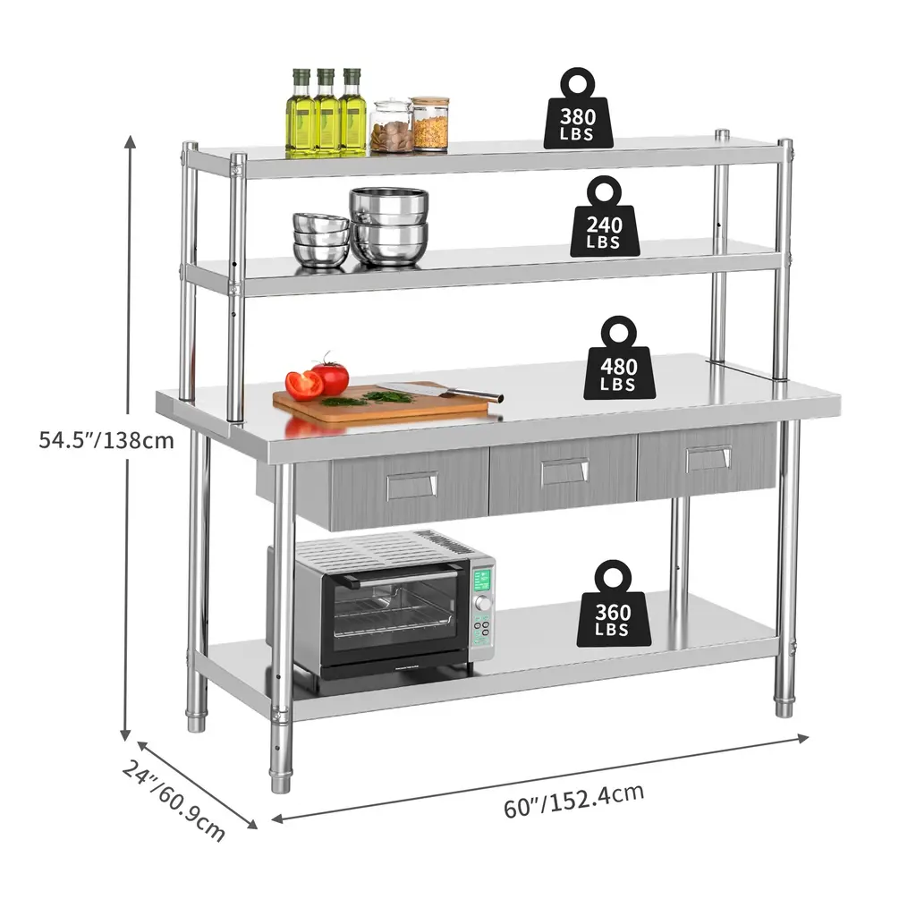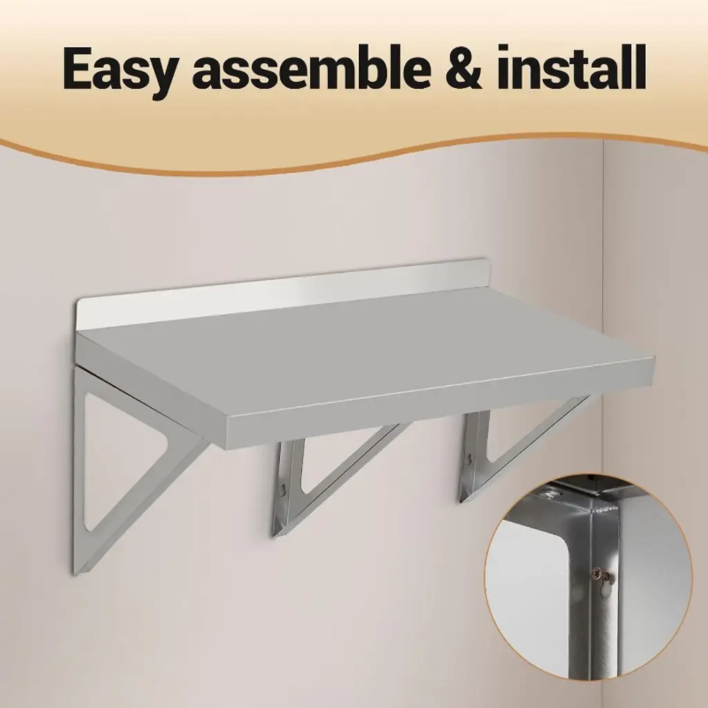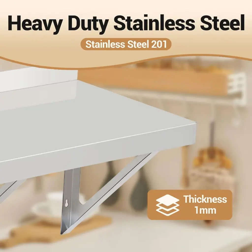 Gustowave Stainless Steel Shelf, Heavy Duty Wall Shelf With Backsplash & Brackets For Kitchens, Restaurants, Bars, Silver