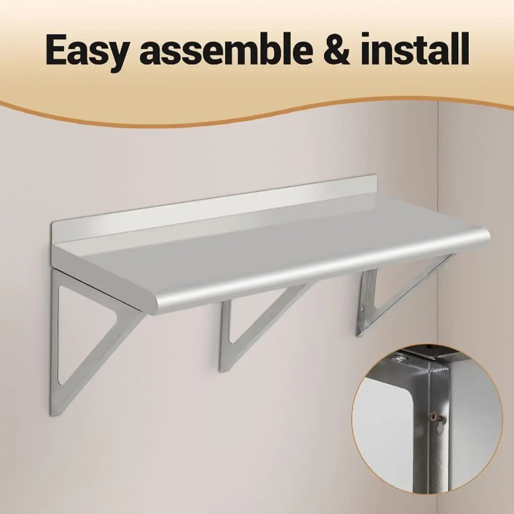 Gustowave Stainless Steel Shelf, Heavy Duty Wall Shelf With Backsplash & Brackets For Kitchens, Restaurants, Bars, Silver