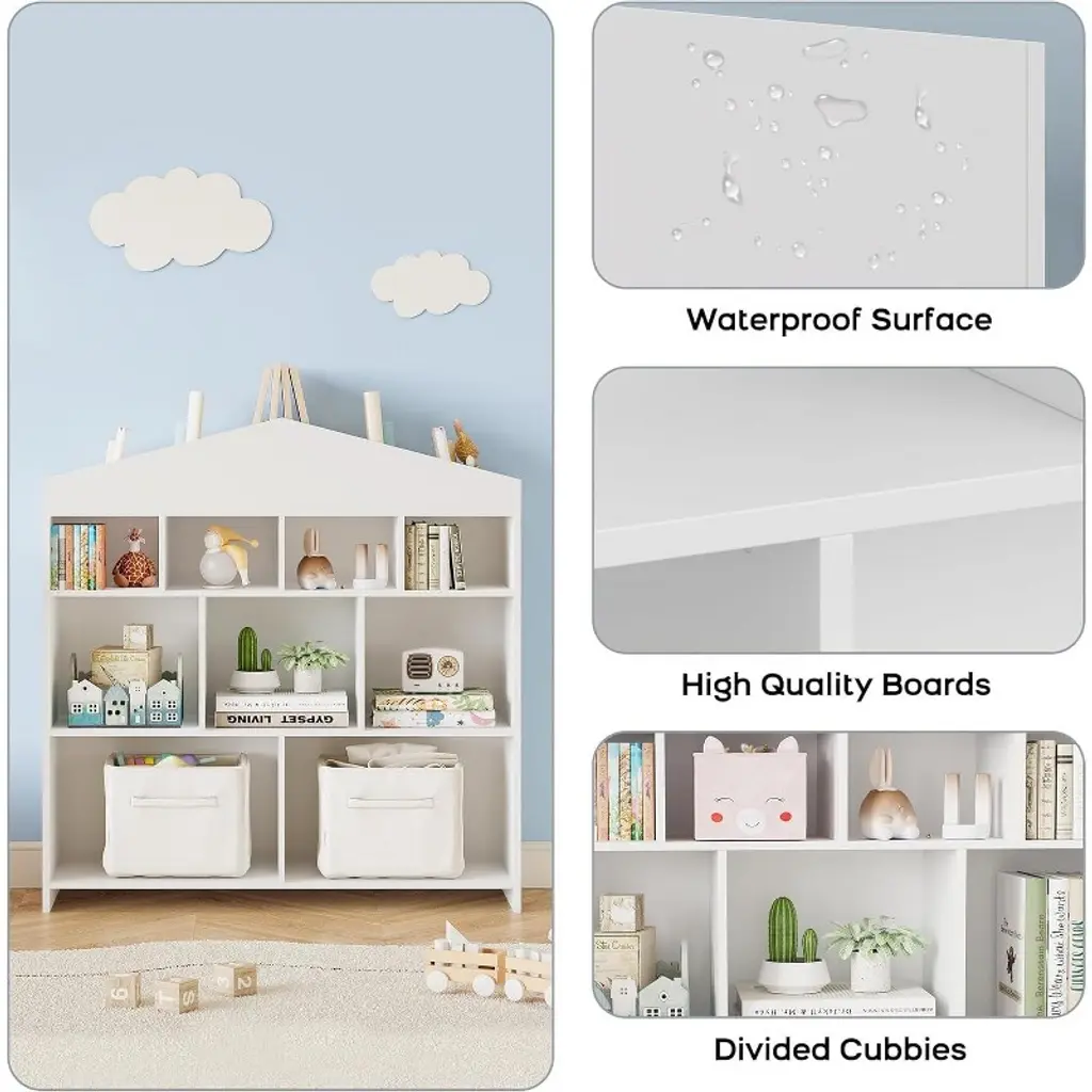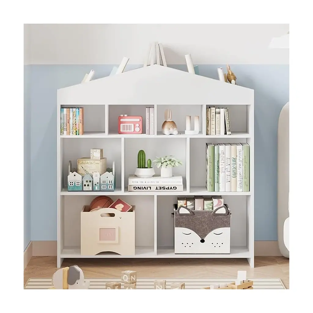 Toy Storage Organizer 9-Cubby Kids Bookshelf 40.7in Width White Bookcase Toddlers Playhouse Cabinet Shelf Wooden Cubby Storage Toy Shelf