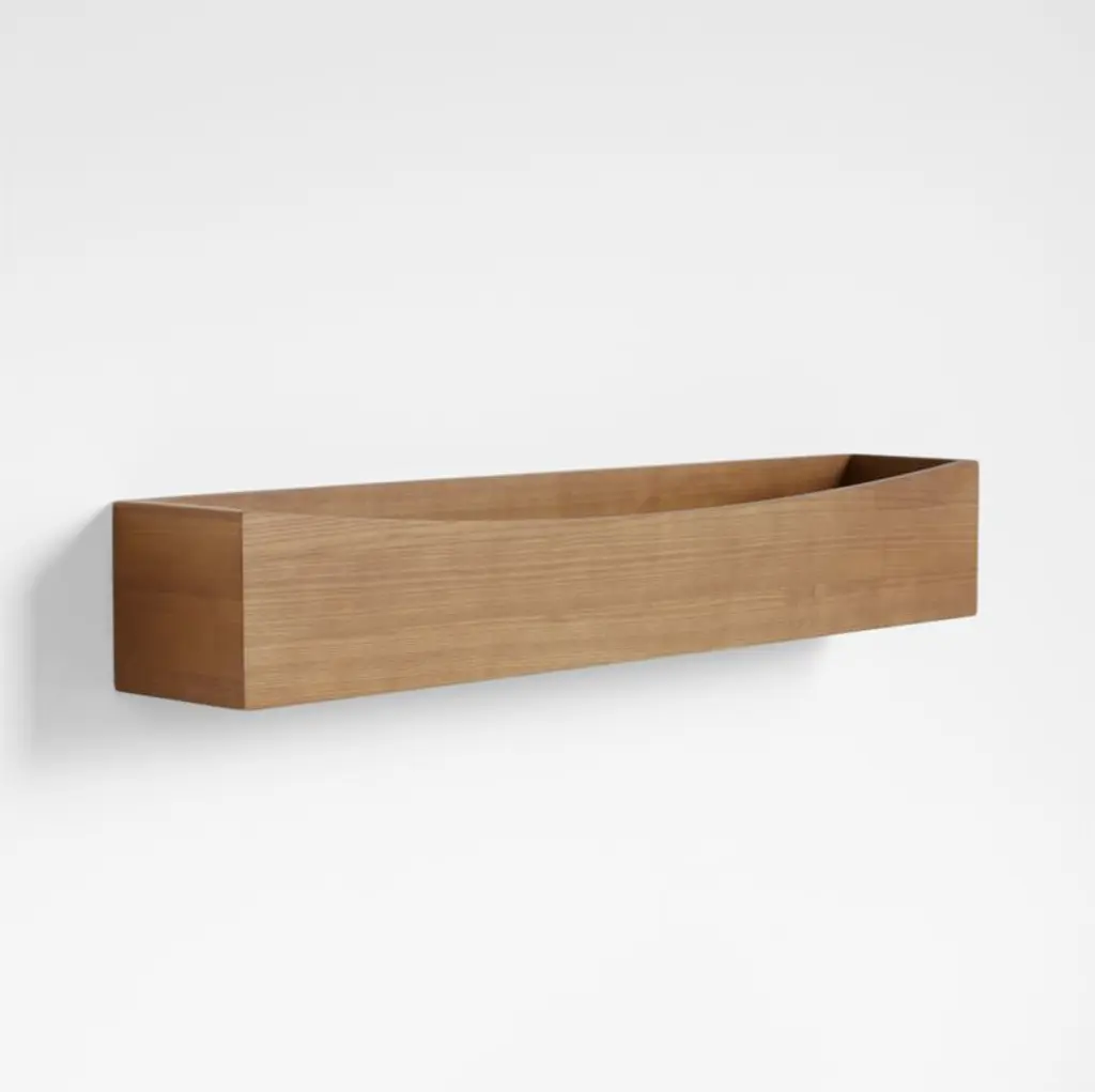 Bring clean, timeless design and extra storage space to your kid's bedroom or nursery with our Hampshire Wall Storage Bin. Its natural brown finish blends effortlessly with any decor, and solid ash construction makes it as durable as it is beautiful. Hung on its own or grouped with other storage pieces from our Hampshire collection, the wall shelf offers a modern solution for holding kid and baby supplies while keeping the desk or changing table clutter-free.