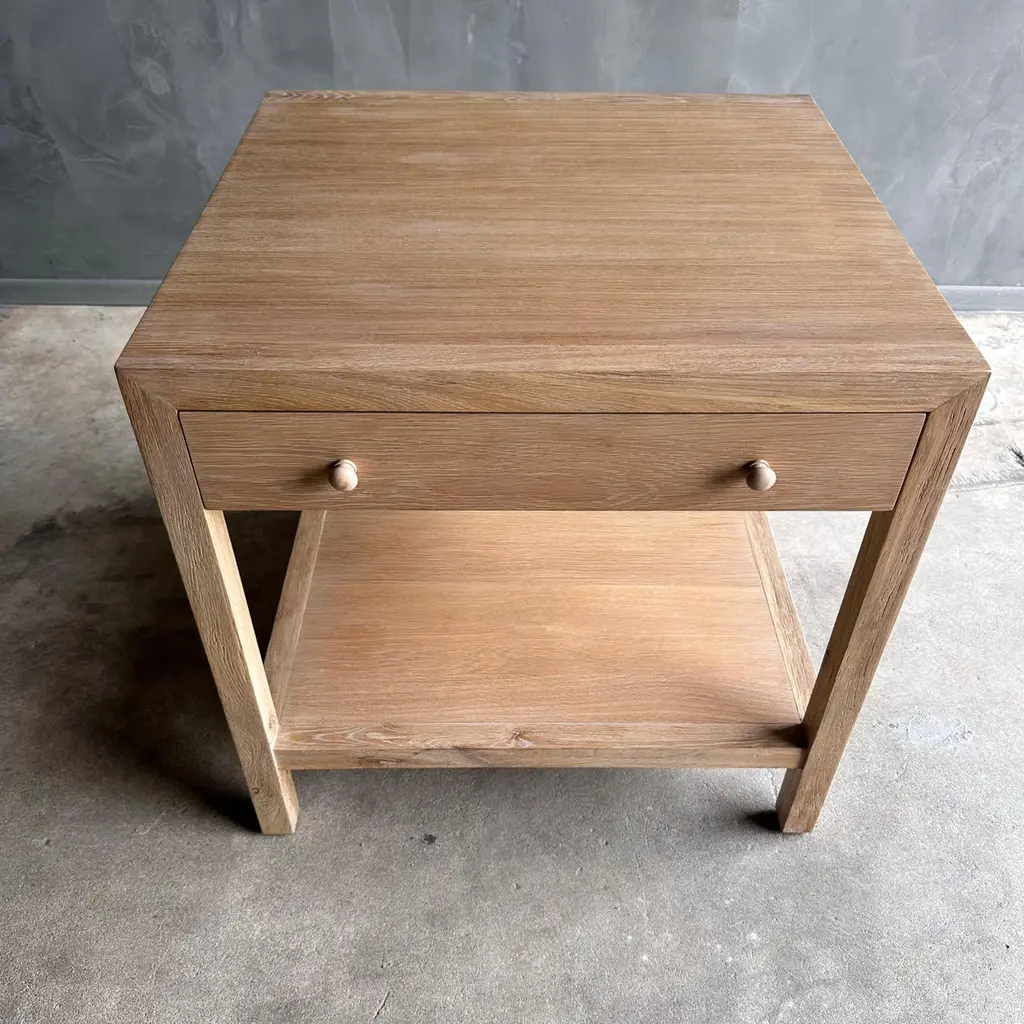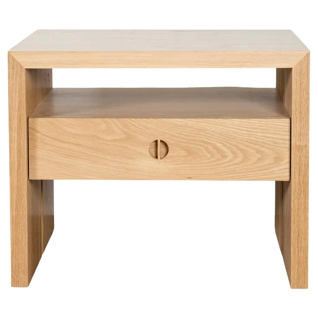 The Harper White Oak Nightstand is the perfect choice for those looking to add a contemporary flair to their bedroom. The natural finish of the white oak wood brings a sense of warmth and sophistication to any space. The single drawer provides ample storage for all your bedside essentials, keeping your bedroom clutter-free and organized.Designer: Bloom Home Inc.Finish: Natural L115Size: 26" w x 21" d x 26" hDrawer size: 23" w x 4" h x 2" interior height