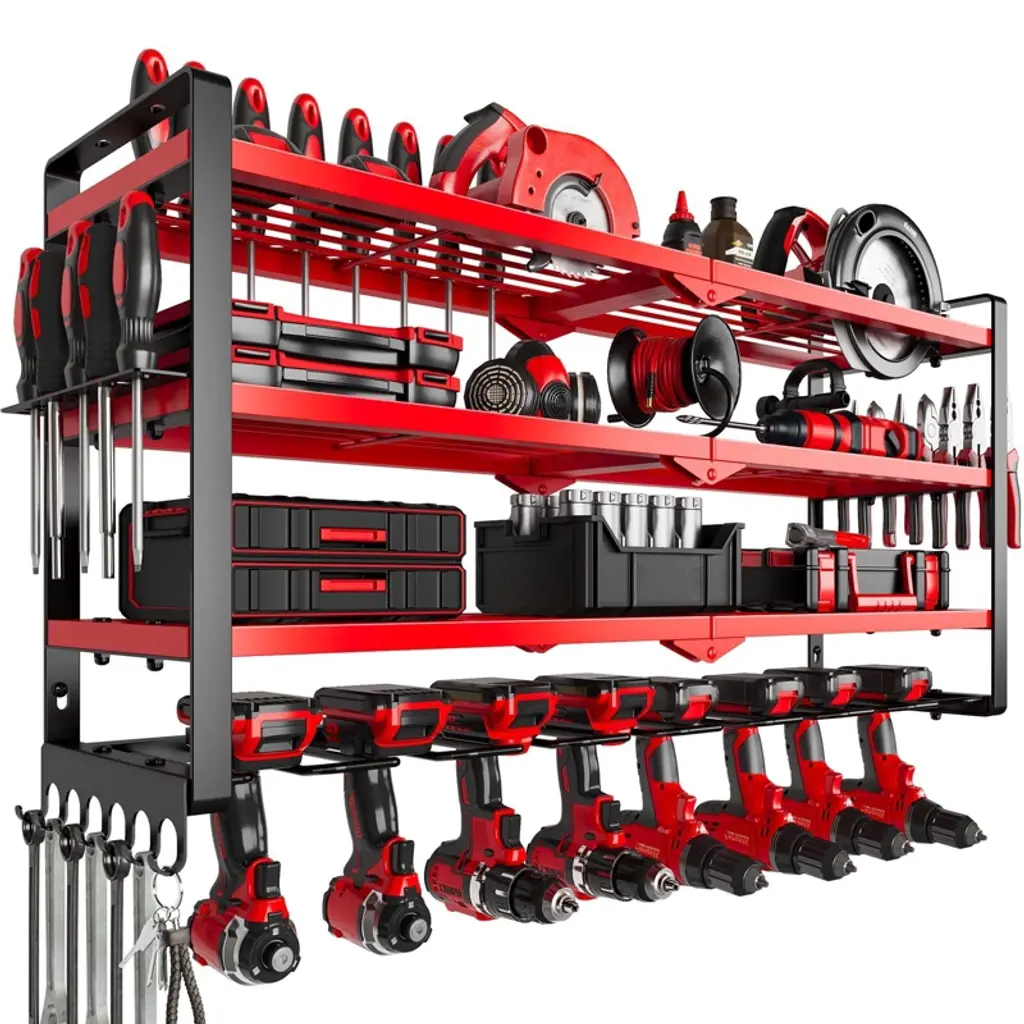 Maximize your workspace with this 4-tier wall-mounted power tool organizer. Designed to hold up to 8 drills and various tools, it offers durable steel construction, adjustable shelves, and a versatile pegboard. Easy to assemble, it's perfect for keeping your garage or workshop organized.